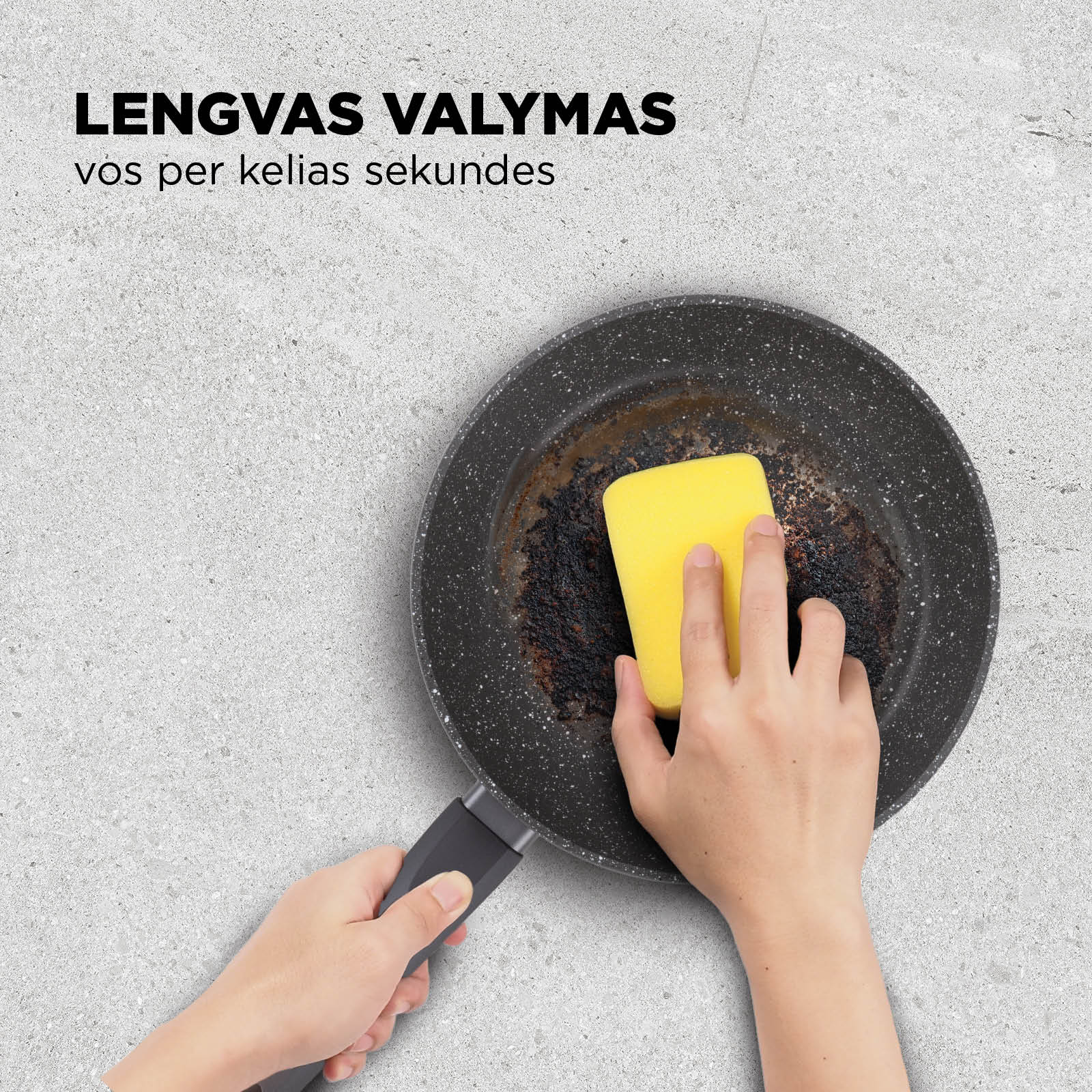 - Nelimpanti mineralinė danga leidžia gaminti su minimaliu riebalų kiekiu – sveikai ir skaniai.