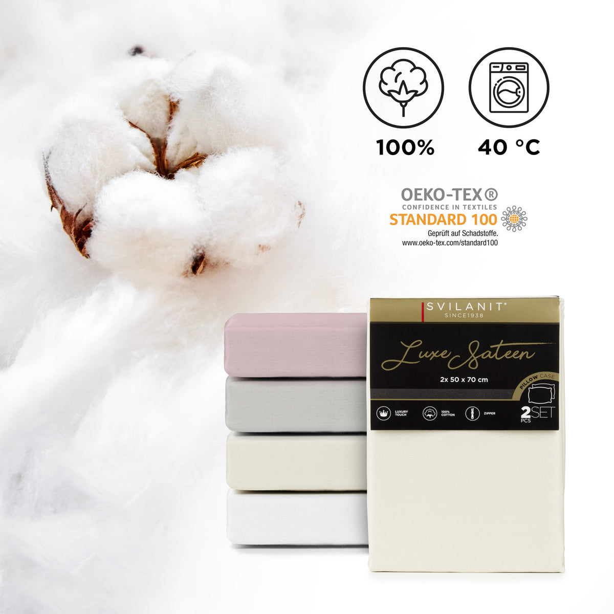 Svilanit pagalvės užvalkalų privalumas yra pralaidumas orui, leidžiantis giliau miegoti nepabudus. OEKO-TEX sertifikatas (Standard 100) užtikrina, kad procese nebuvo naudojamos kenksmingos medžiagos.