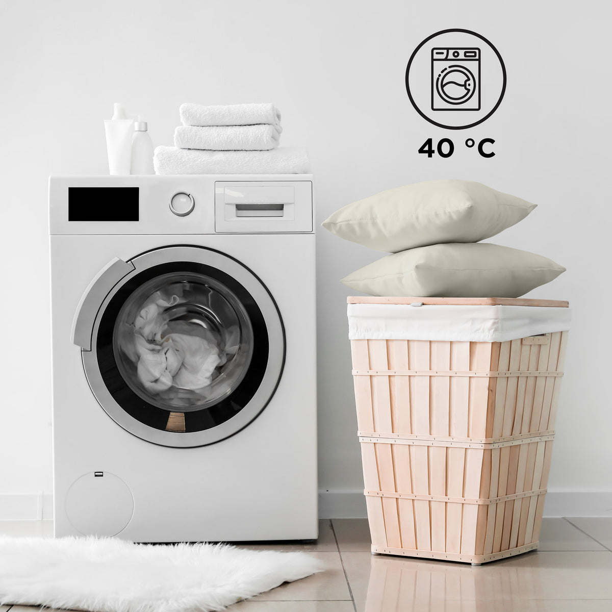 - Užvalkalus galima lengvai skalbti skalbimo mašinoje 40 °C temperatūroje.