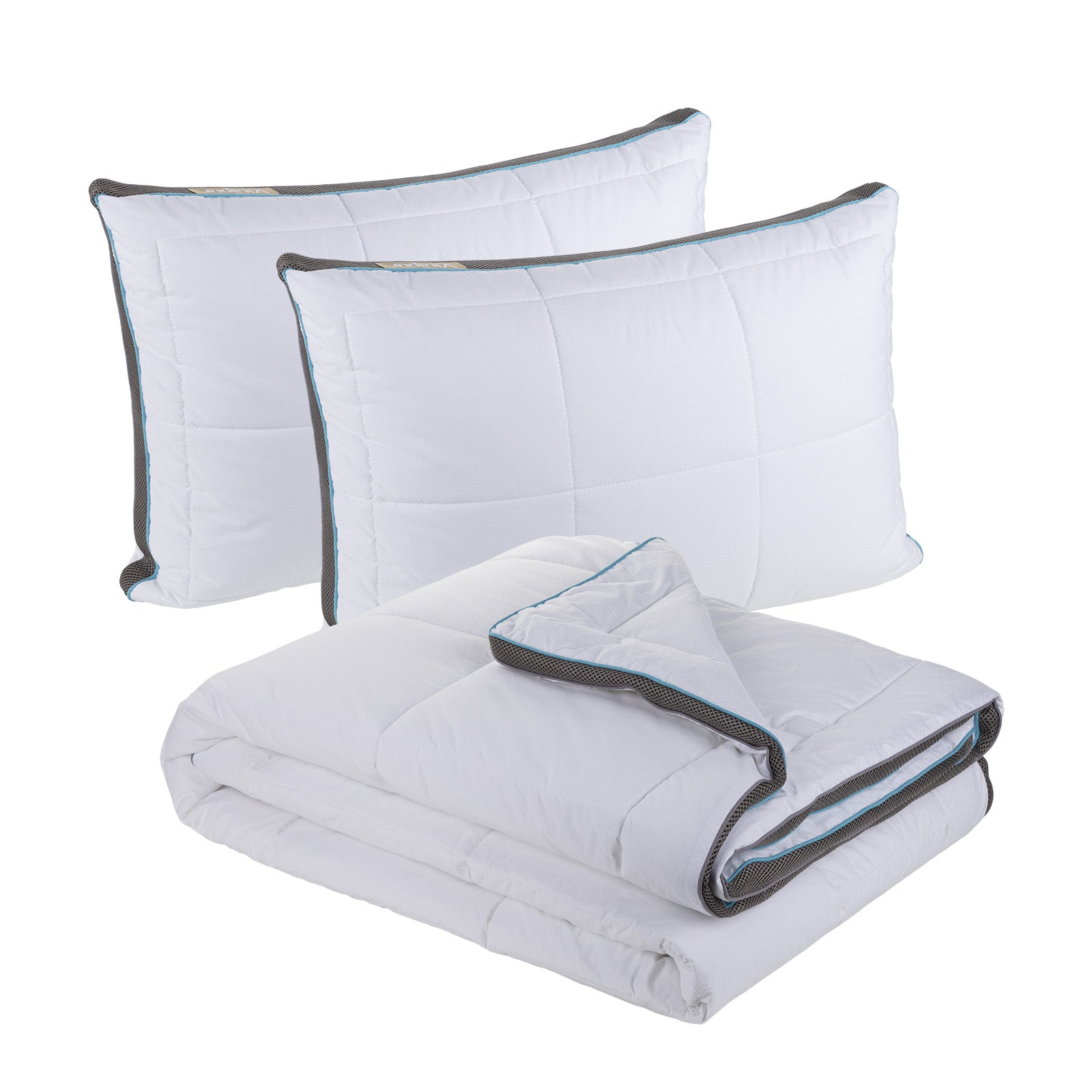 - 3 dalių komplektas tobulam komfortui: hibridinė visų sezonų antklodė ir 2 hibridinės pagalvės MemoSilver Premium.