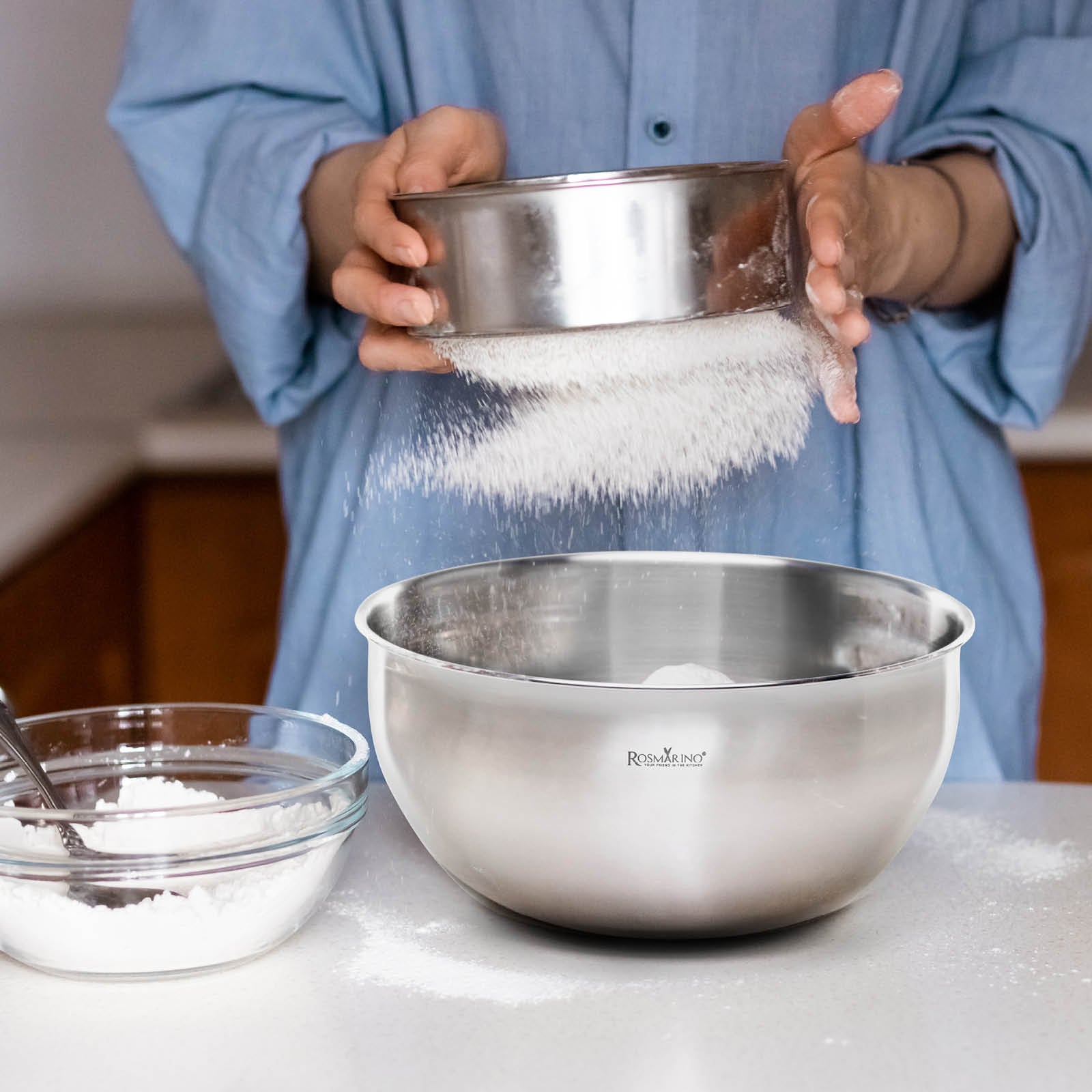 Nerūdijančio plieno maišymo dubenys „Rosmarino Pour&Cook“ – tai puikus įrankis visiems jūsų maisto ruošimo darbams. Juose galite maišyti įvairias salotas ir garnyrus arba plakti ingredientus ruošdami desertus ir kepinius. Pagaminti iš itin aukštos kokybės nerūdijančio plieno, kuris po plovimo yra atsparus įbrėžimams, įlenkimams, dėmėms. Jie taip pat yra skirti maistui laikyti – kadangi yra atsparūs žemesnei temperatūrai, juos galite dėti ir į šaldiklį. Šie nuostabūs universalūs dubenys yra įvairių dydžių ir puikiai tinka visiems susibūrimams, nes juose galite patiekti salotas, garnyrus, kepinius, vaisius, spragėsius ar traškučius.