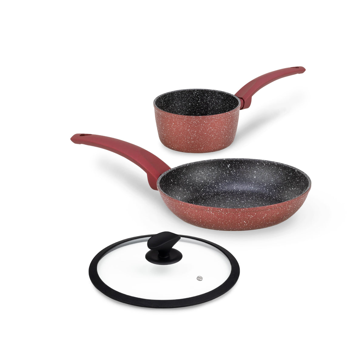 - Rinkinį sudaro: 1 x keptuvė (24 cm), 1 x puodas (16 cm), 1 x dangtis (24 cm).