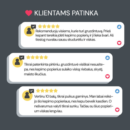 - Rinkinyje rasite 50 kepimo popieriaus vienetų, todėl galėsite be rūpesčių pagaminti 50 patiekalų.