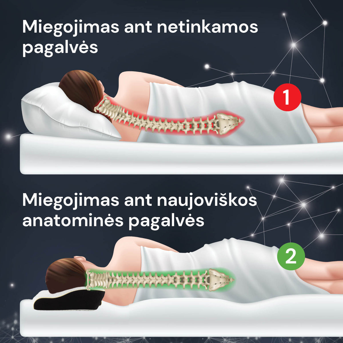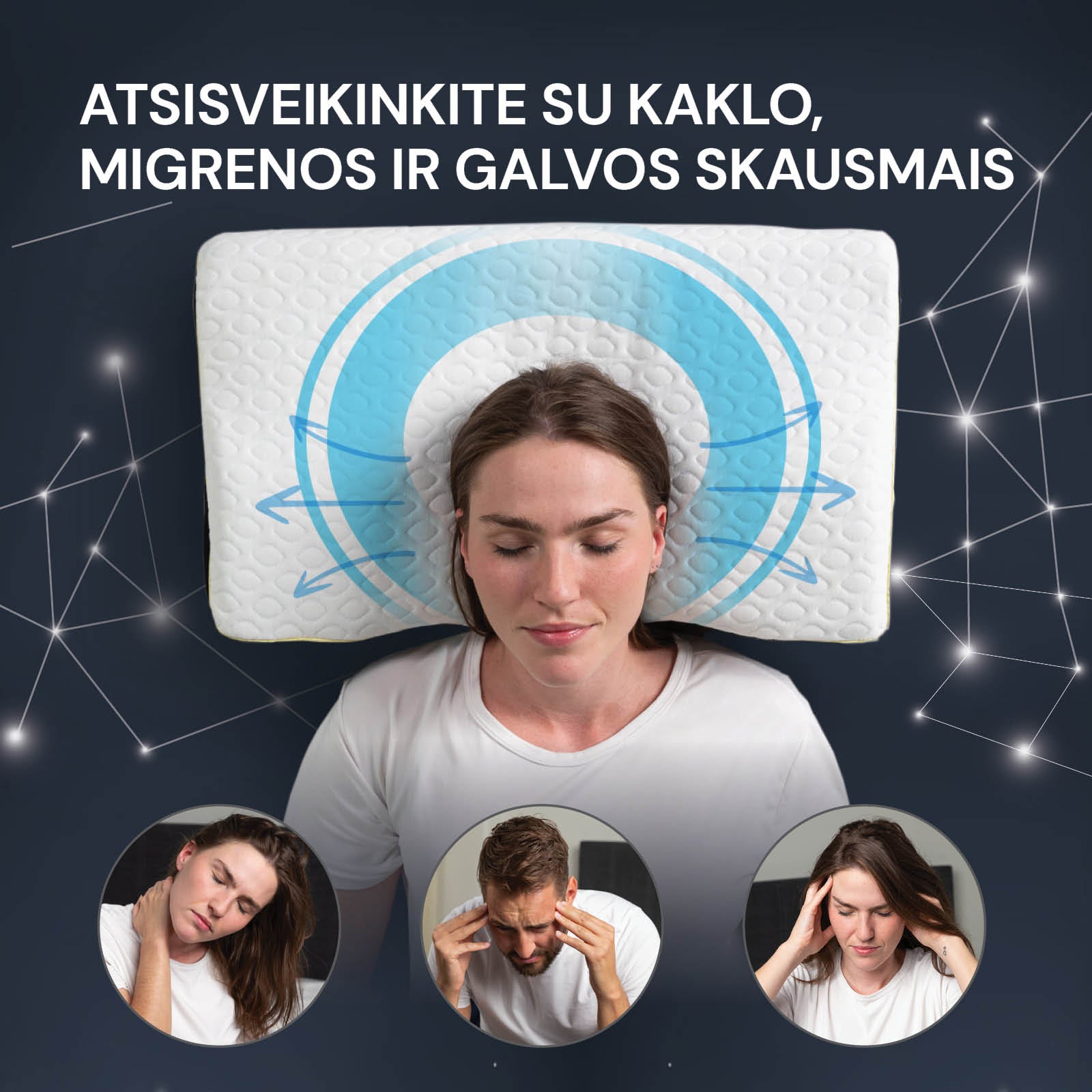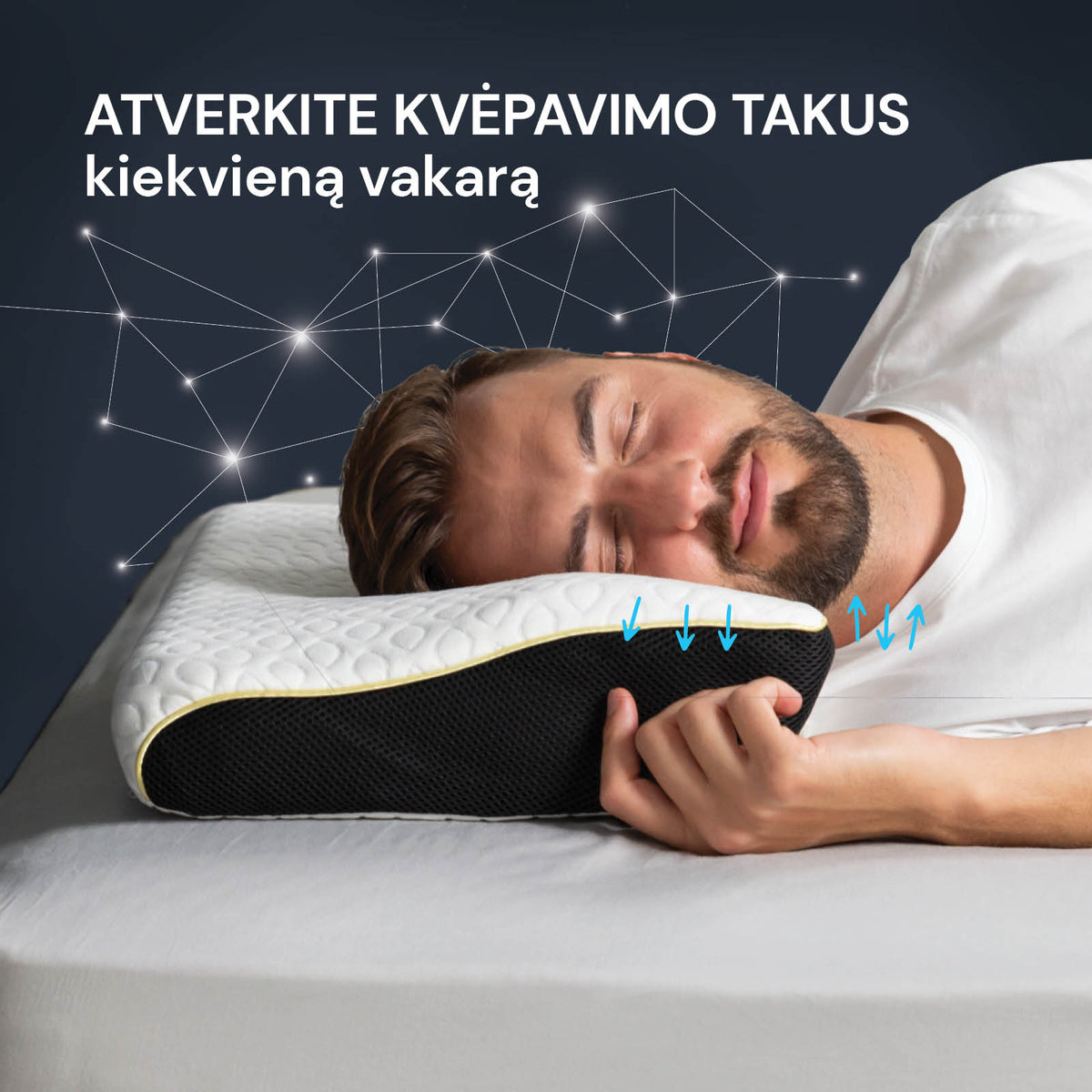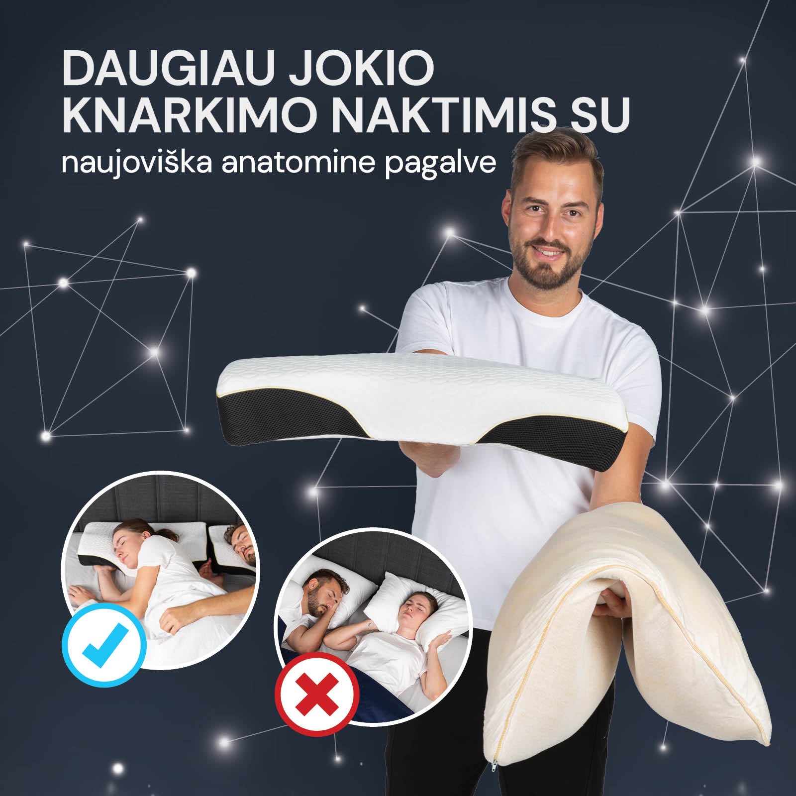 - Inovatyvi pagalvė, padedanti sumažinti knarkimą ir atverianti kvėpavimo takus.