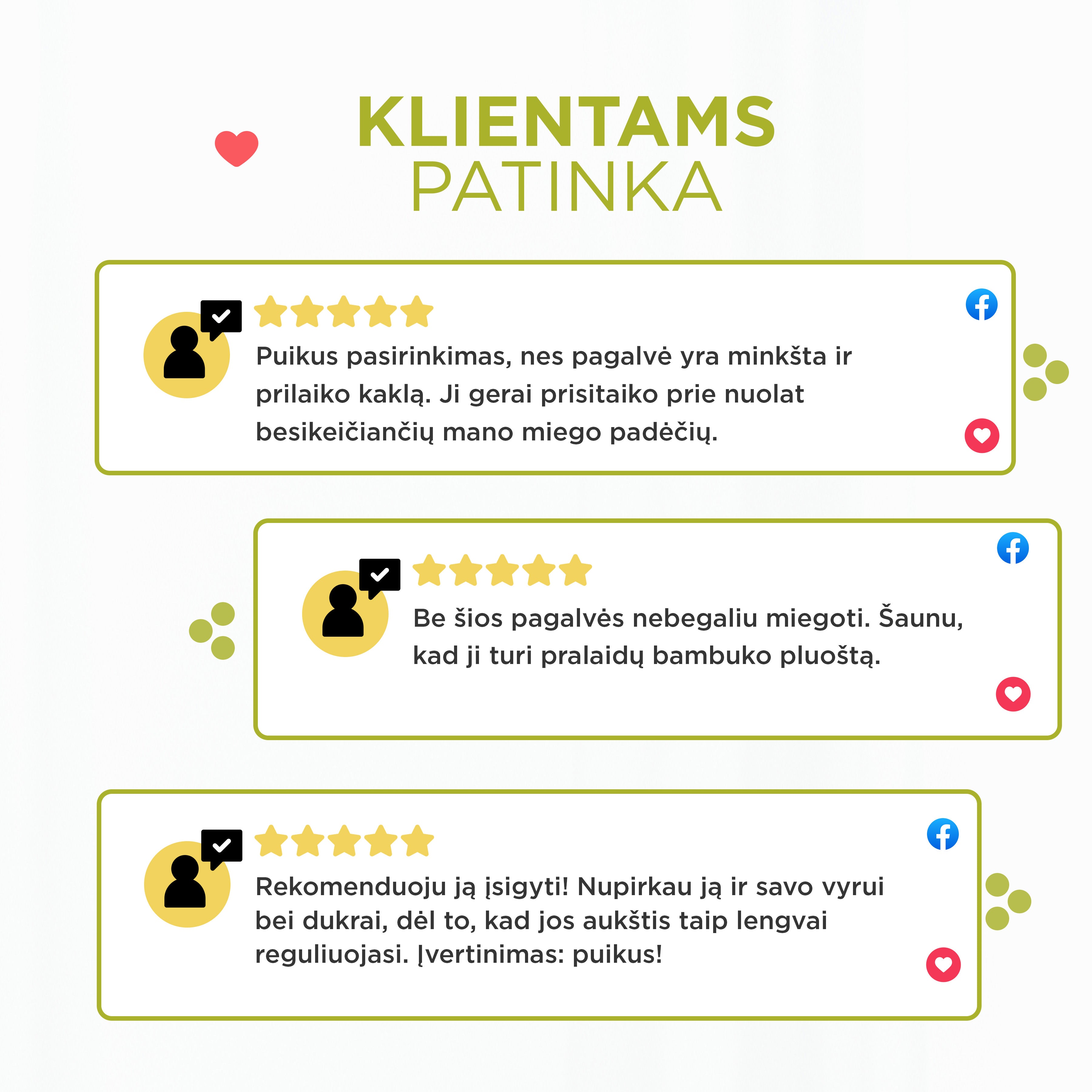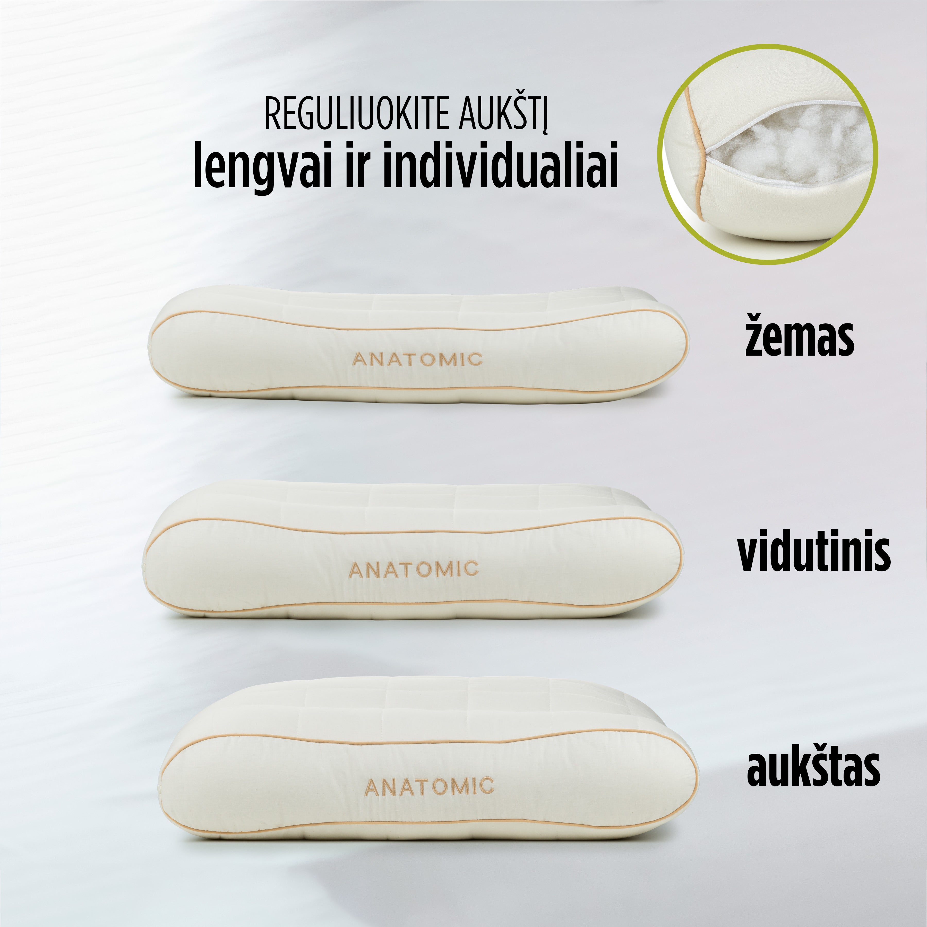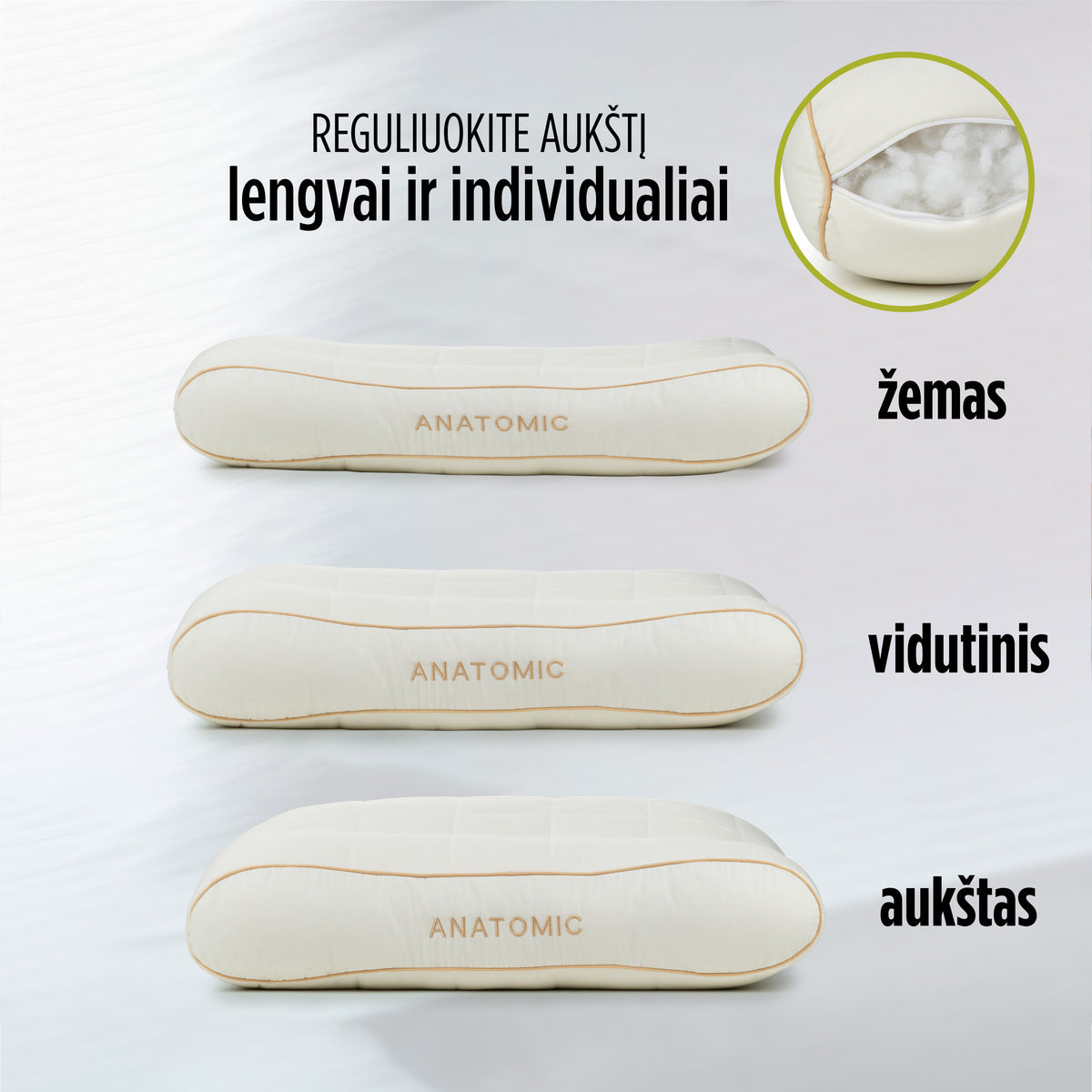 - Individualus aukščio reguliavimas leidžia pagalvę pritaikyti pagal savo skonį ir miego padėtį.