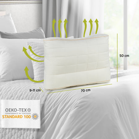 Pagalvė leidžia geriau kvėpuoti su didesne apimtimi. Dėl unikalios užpildo struktūros ji yra maloniai minkšta ir taip suteiks jums dar daugiau ramaus kvėpavimo ir gilaus miego.