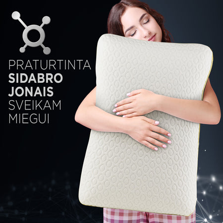 - Sidabro jonai padeda sumažinti pagalvėje esančių bakterijų kiekį ir taip užtikrina sveikesnę miego aplinką.
