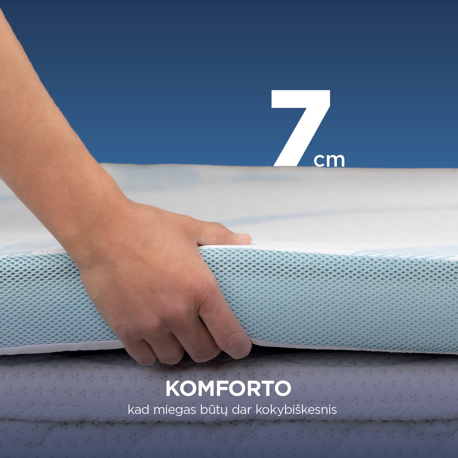 - Prisitaikantis pluoštas su geliu ir perforuota struktūra išsklaido šilumos perteklių, kad miego aplinka būtų gaivi.