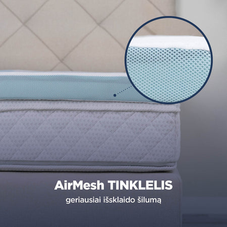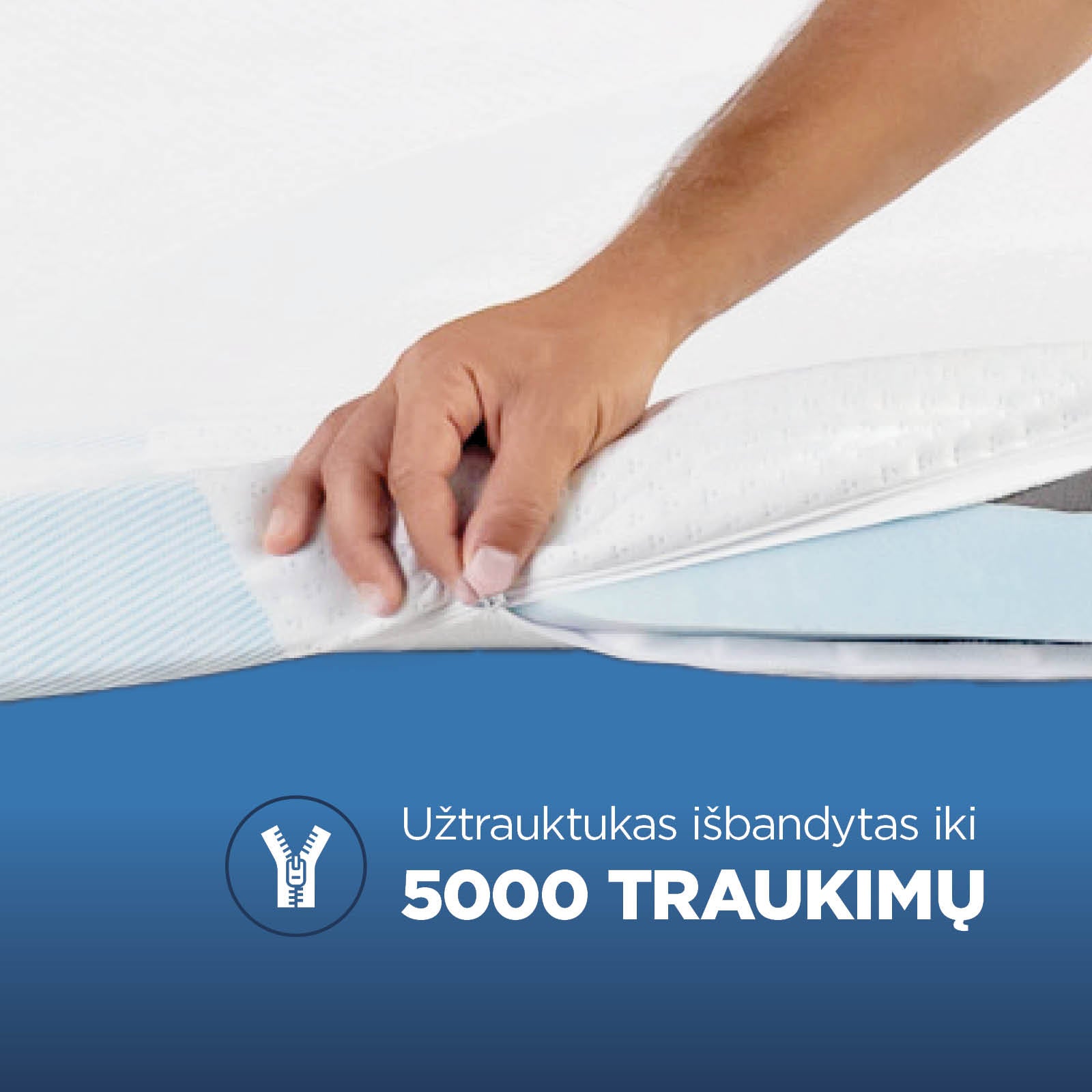 - Aukščiausios kokybės antčiužinys išsiskiria vėsinamuoju poveikiu – reguliuoja temperatūrą ir išsklaido perteklinę šilumą, kad miegas būtų optimalus visais metų laikais.