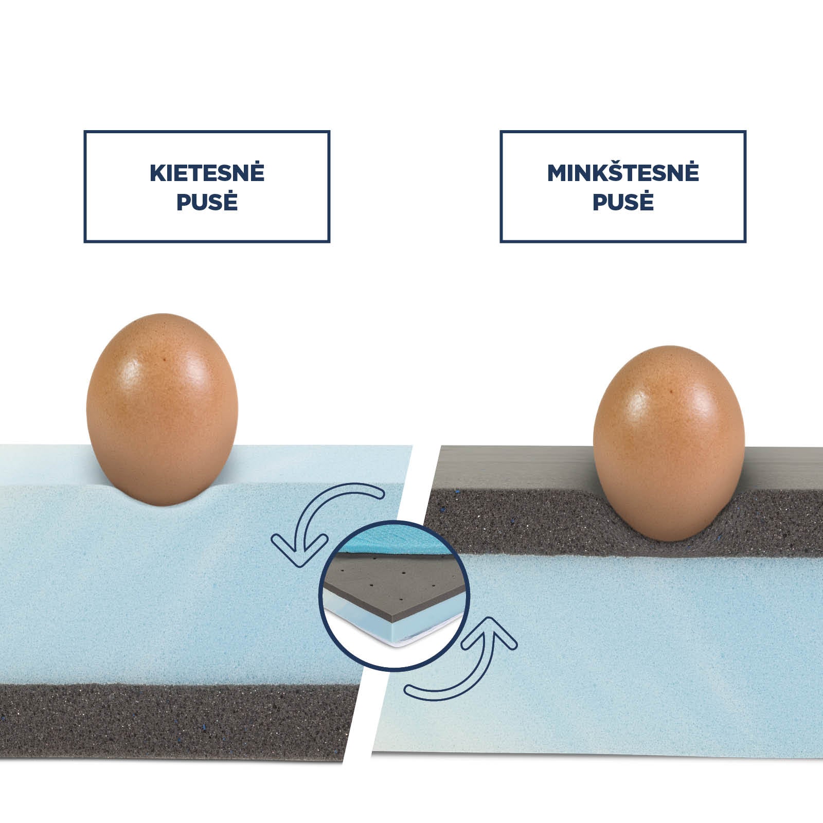 Dvipusis antčiužinys su minkštesne ir kietesne puse.