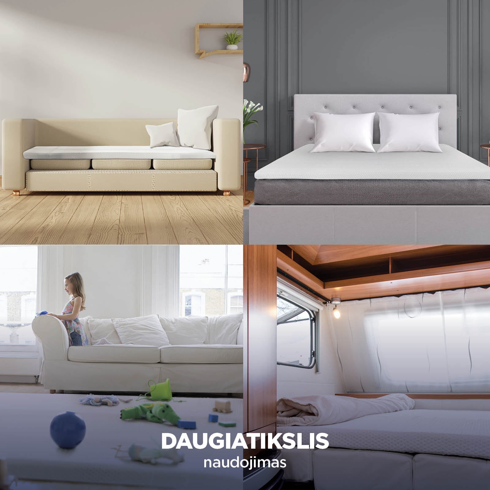 - Puikiai palaiko stuburą, klubus ir pečius, atpalaiduoja kūną miego metu.