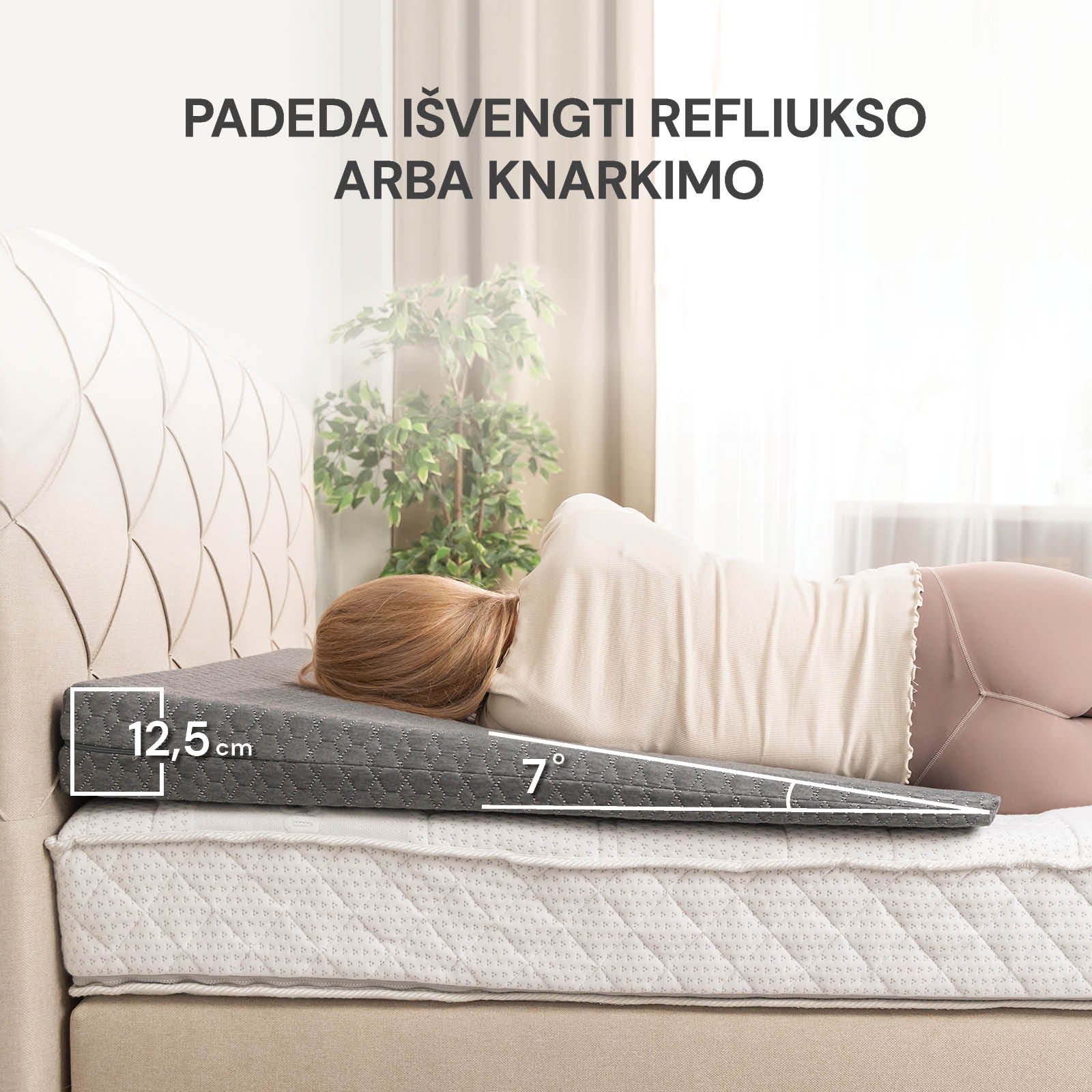 - Pagalvės 7° kampas padeda sumažinti refliuksą ir pagerinti virškinimą.