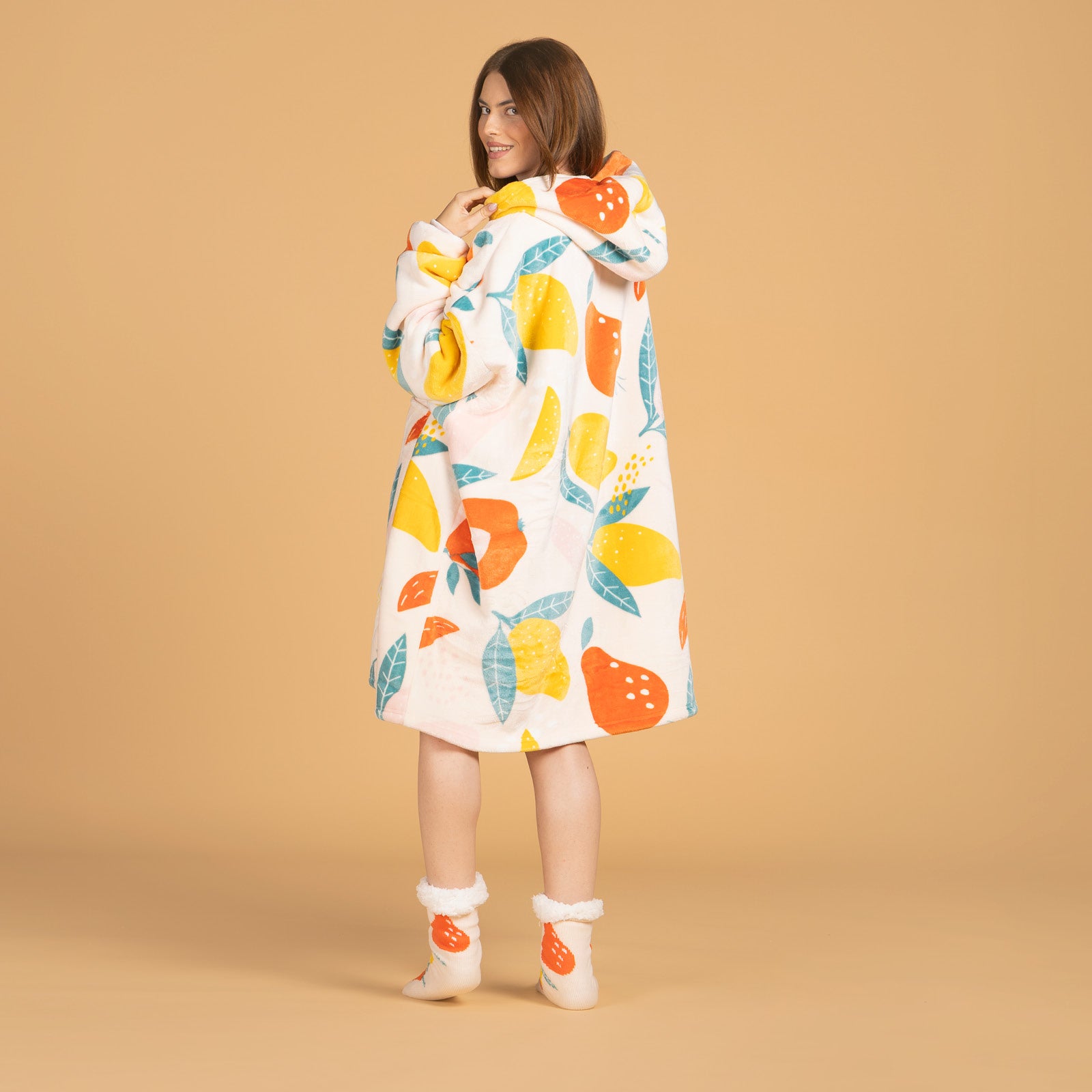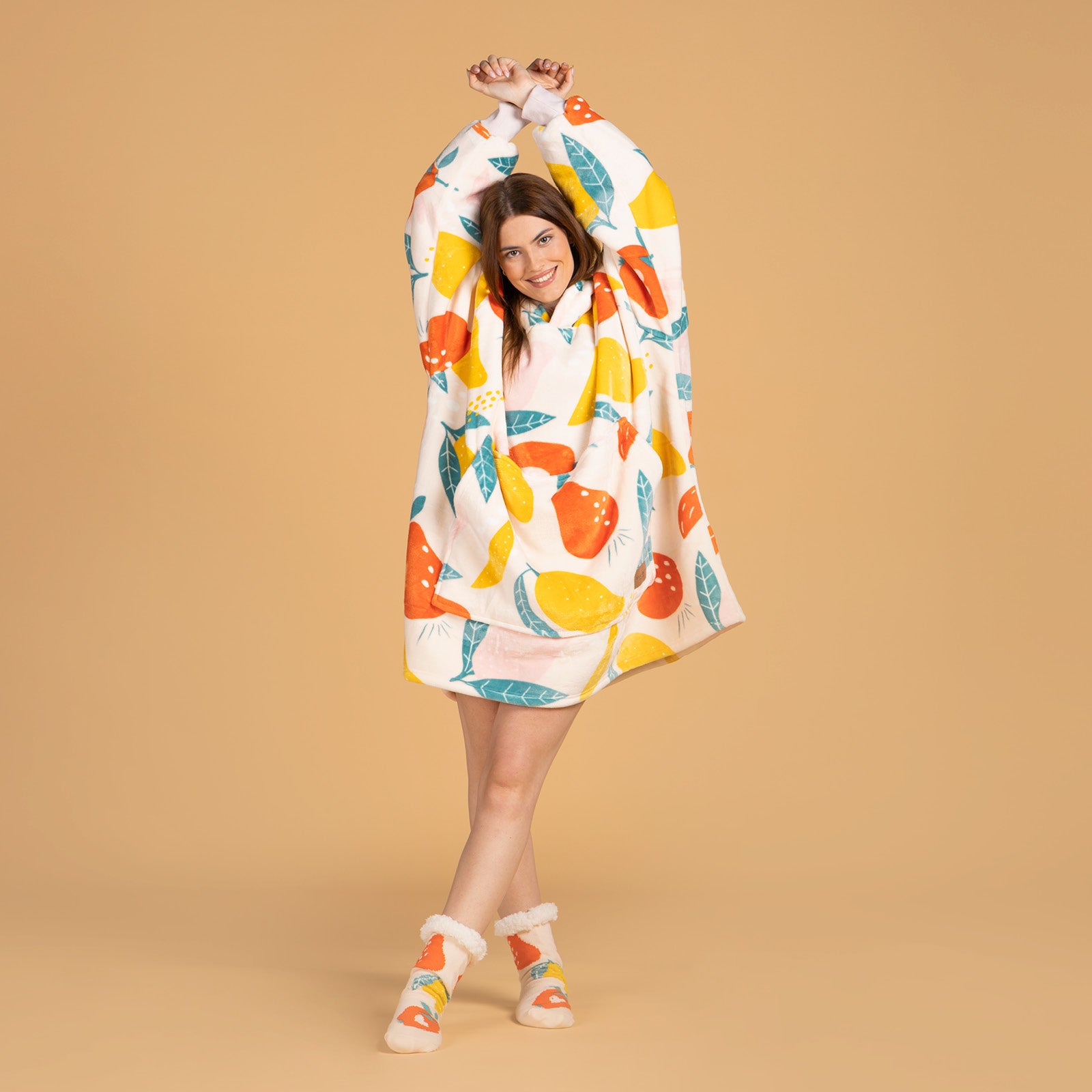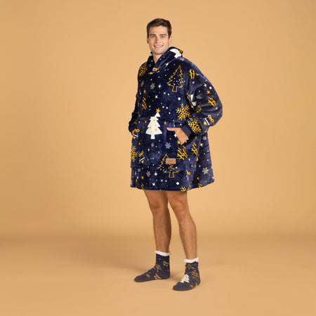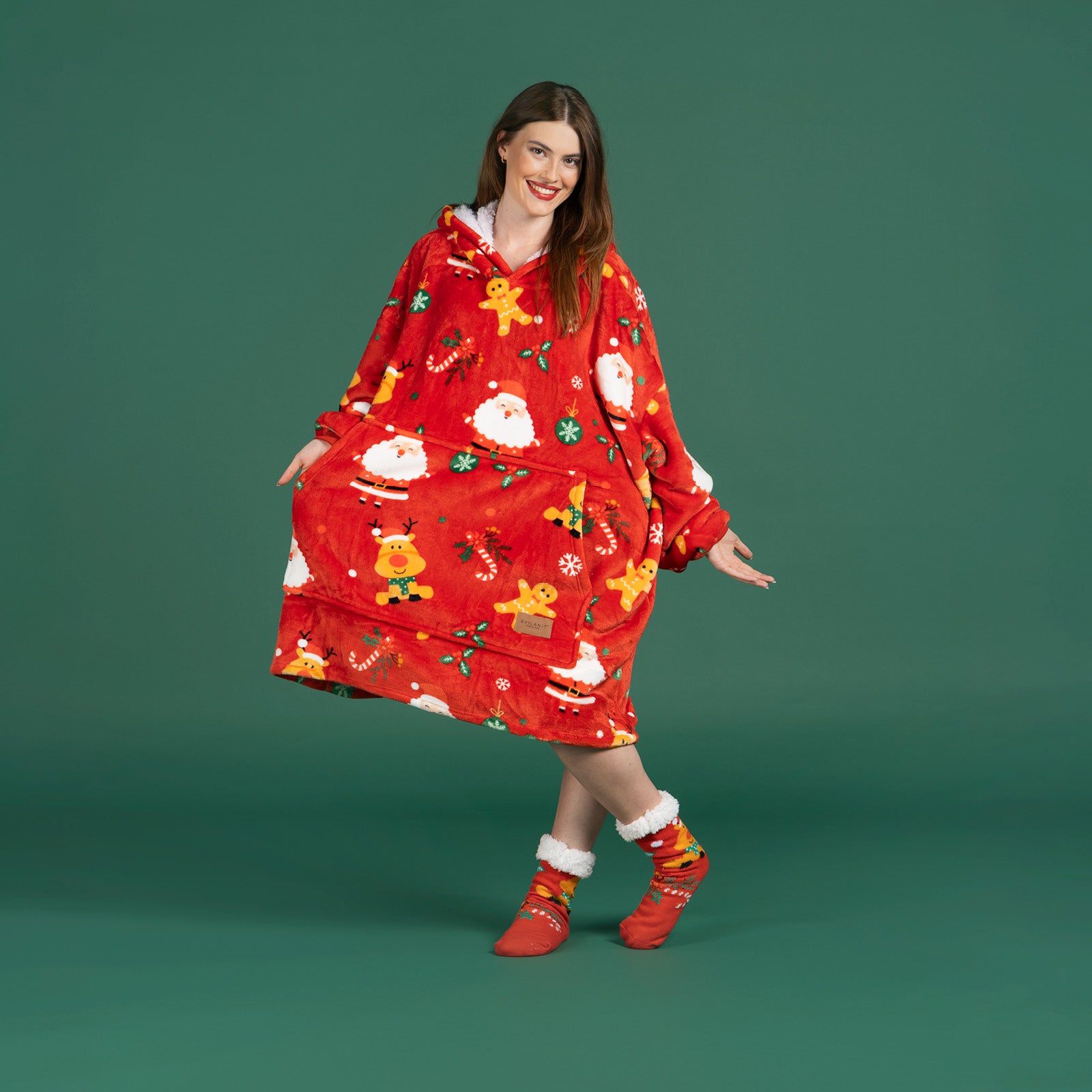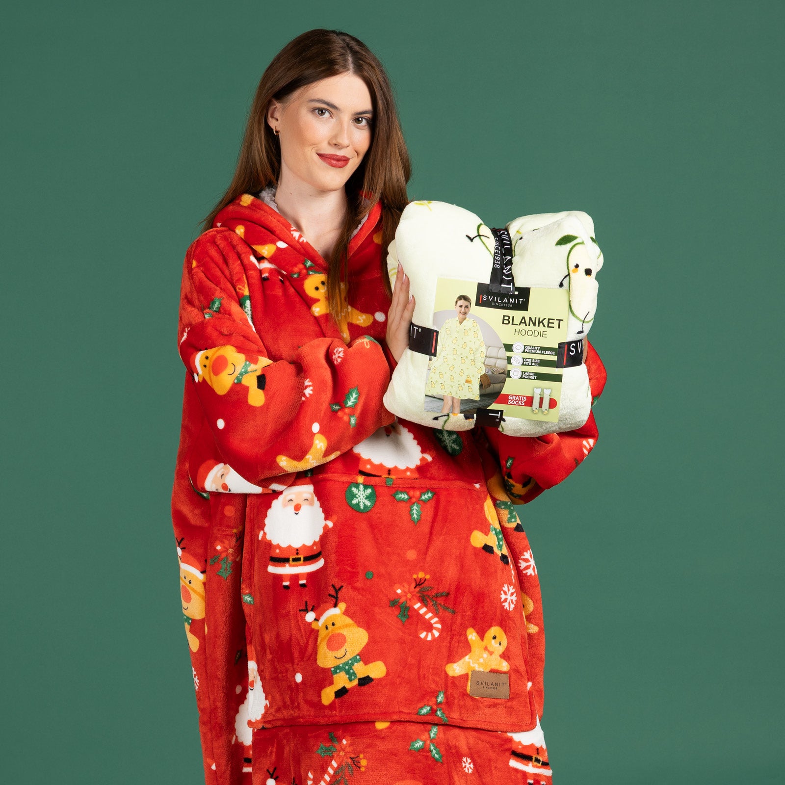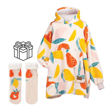 - Dovana: šiltos kojinės su neslystančia apsauga tokiu pačiu dizainu kaip ir antklodė su gobtuvu.
