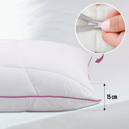 - Pagalvės aukštį galima reguliuoti pagal savo poreikius ir miego padėtį.