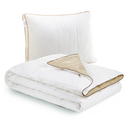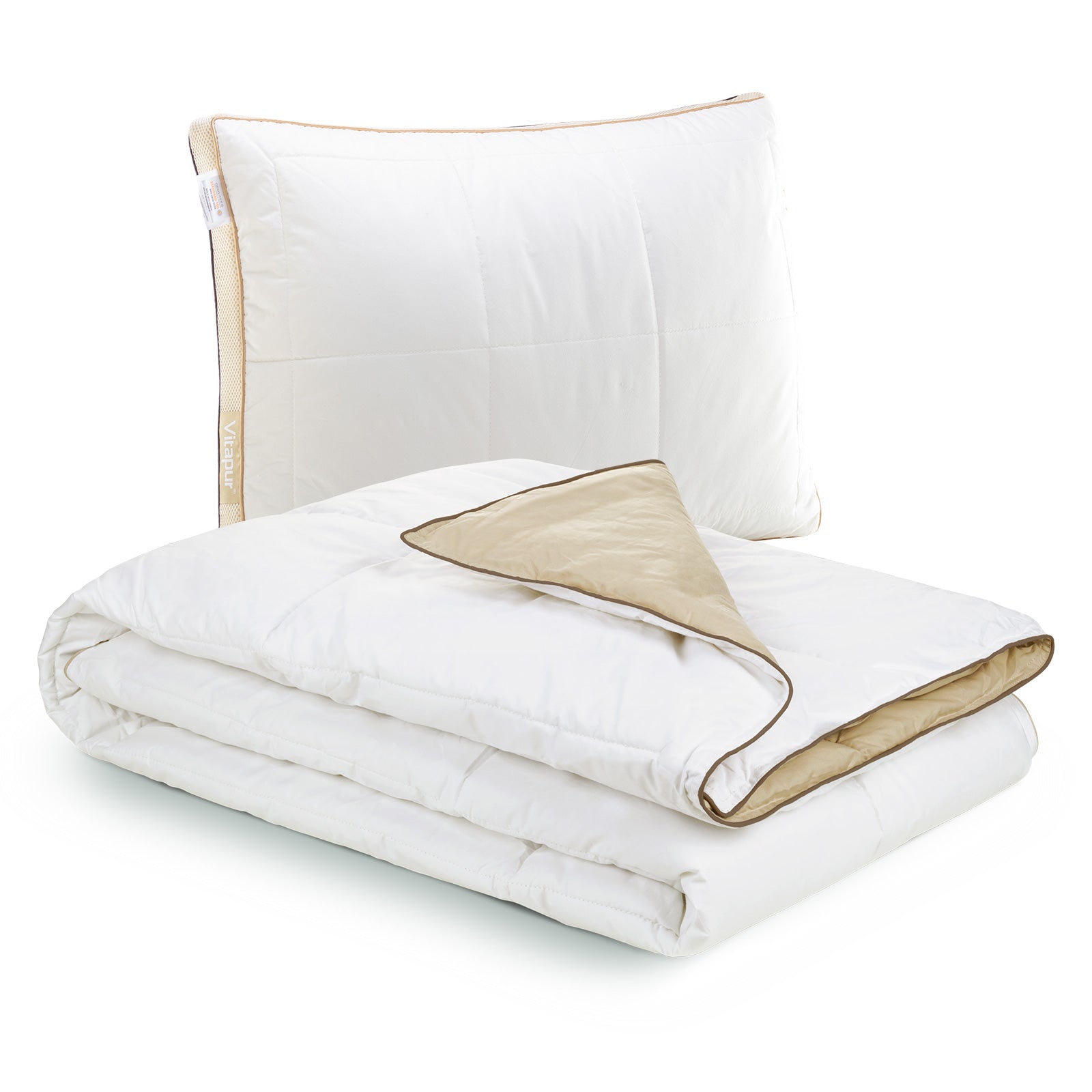 - 2 dalių komplektas reguliuojamam komfortui: hibridinė visų sezonų antklodė ir hibridinė pagalvė Vitapur NEO.