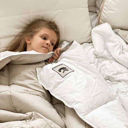 - 2 sluoksnių hibridinė sudėtis užtikrina geresnį pojūtį kiekvienos nakties apkabinime: merino vilnos sluoksnis puikiai reguliuoja šilumą, kad niekada nebūtų per karšta, o ekologiška pūkų alternatyva suteikia išskirtinį švelnumo pojūtį.