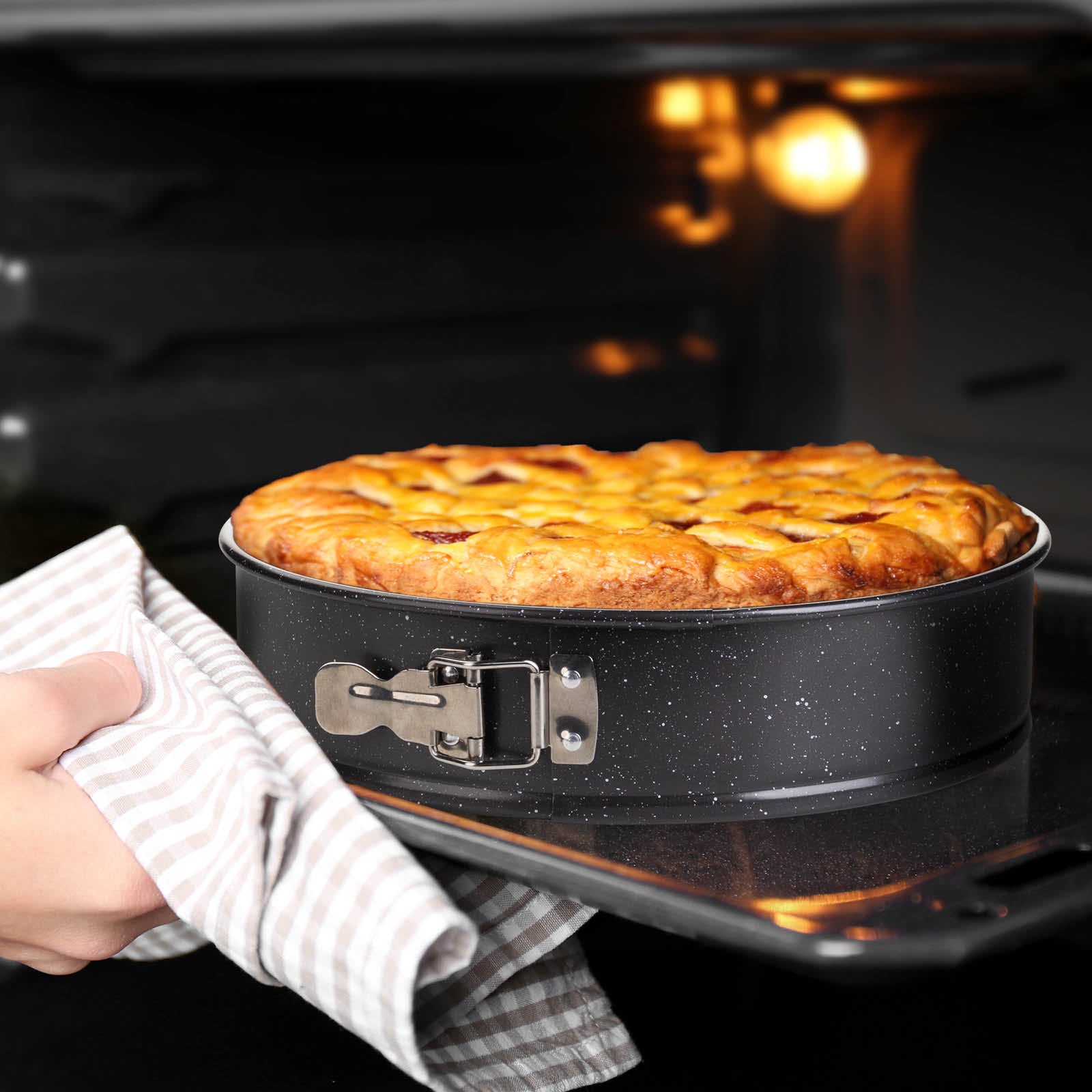 Dėl nuimamo krašto „BakerPRO“ keptuvė yra itin praktiška, todėl kepimo būdas yra unikalus. Nerūdijančio plieno užraktas sandariai užsidaro, kad kepant neišsilietų skysčiai ar tešla. Tuo pačiu, iškepus, jį nesunkiai nuimsite ir perkelsite tešlą į formą.