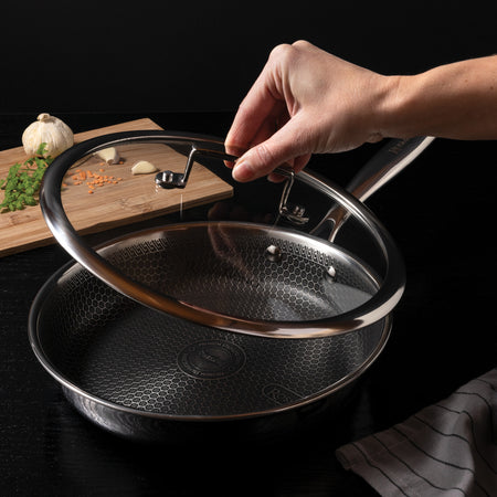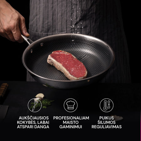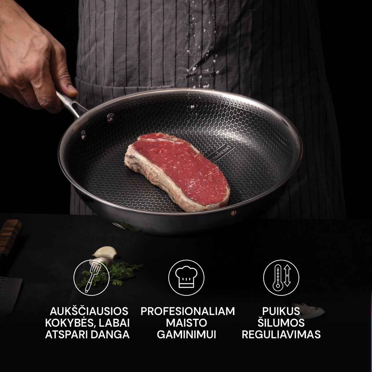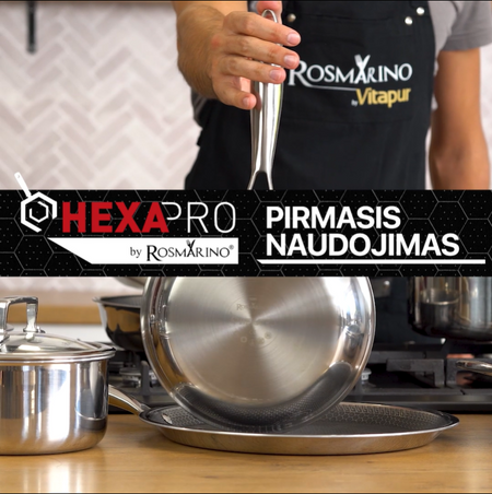 Pristatome naują tobulumo sinonimą: nerūdijančiojo plieno ilgaamžiškumas ir nelimpančio paviršiaus patogumas, kuris dar labiau palengvina gaminimą. HexaPRO – tai inovatyvios hibridinės technologijos rezultatas, sujungiantis daugiasluoksnę indų konstrukciją profesionaliems rezultatams pasiekti. Tai premium klasės virtuvės indai, kurie pakylėja jūsų kulinarinius įgūdžius į aukštesnį lygį.