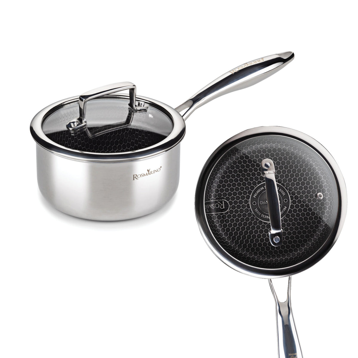 Aukščiausios kokybės Rosmarino HexaPRO virtuvės indų linija – tai tinkamas pasirinkimas tiems, kurie siekia profesionalių rezultatų gaminant. Išskirtinis patvarumas ir pažangi hibridinė technologija užtikrina tolygiai iškepusius patiekalus. Indai padengti itin atsparia, praktiškai nesusidėvinčia danga, kuri nebijo įbrėžimų. Be jokių kompromisų juos galite naudoti ant visų tipų kaitlenčių ir net orkaitėje iki 220 °C. Tai premium klasės virtuvės indai, kurie pakylėja jūsų kulinarinius įgūdžius į aukštesnį lygį. Puodas su dangčiu – universalus indas mažesniems kiekiams ruošti. Joje lengvai paruošite gardžius padažus, išvirsite sultinį ar pudingą, pašildysite pieną, vandenį ar net išvirsite kiaušinius be lukšto – ir dar daugiau.