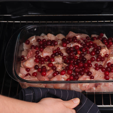 Stiklinė kepimo skarda su modernia Rosmarino Bake&Go (1500 ml) išvaizda bus jūsų naujas nepakeičiamas aksesuaras gaminant maistą ar net valgant kelionėje. Kepimo skarda su dangčiu yra sandari ir nepralaidi skysčiams dėl silikono sandariklio, todėl maisto laikymas ar pasiėmimas su savimi bus jūsų naujoji aistra! Borosilikatinis stiklas yra patvarus ir atsparus įvairiems poveikiams ar mechaniniams pažeidimams, tuo pačiu neišplauna kenksmingų medžiagų į maistą ir nepalieka dirbtinio kvapo ar skonio. Kepimo skarda taip pat atspari aukštai temperatūrai orkaitėje arba mikrobangų krosnelėje, tinka šaldymui ir plaunama indaplovėje. Puikus indas lazanijai gaminti, pyragams kepti, taip pat tinka jau paruoštiems patiekalams laikyti. Pasiimkite savo mėgstamiausius patiekalus net į kelionę.