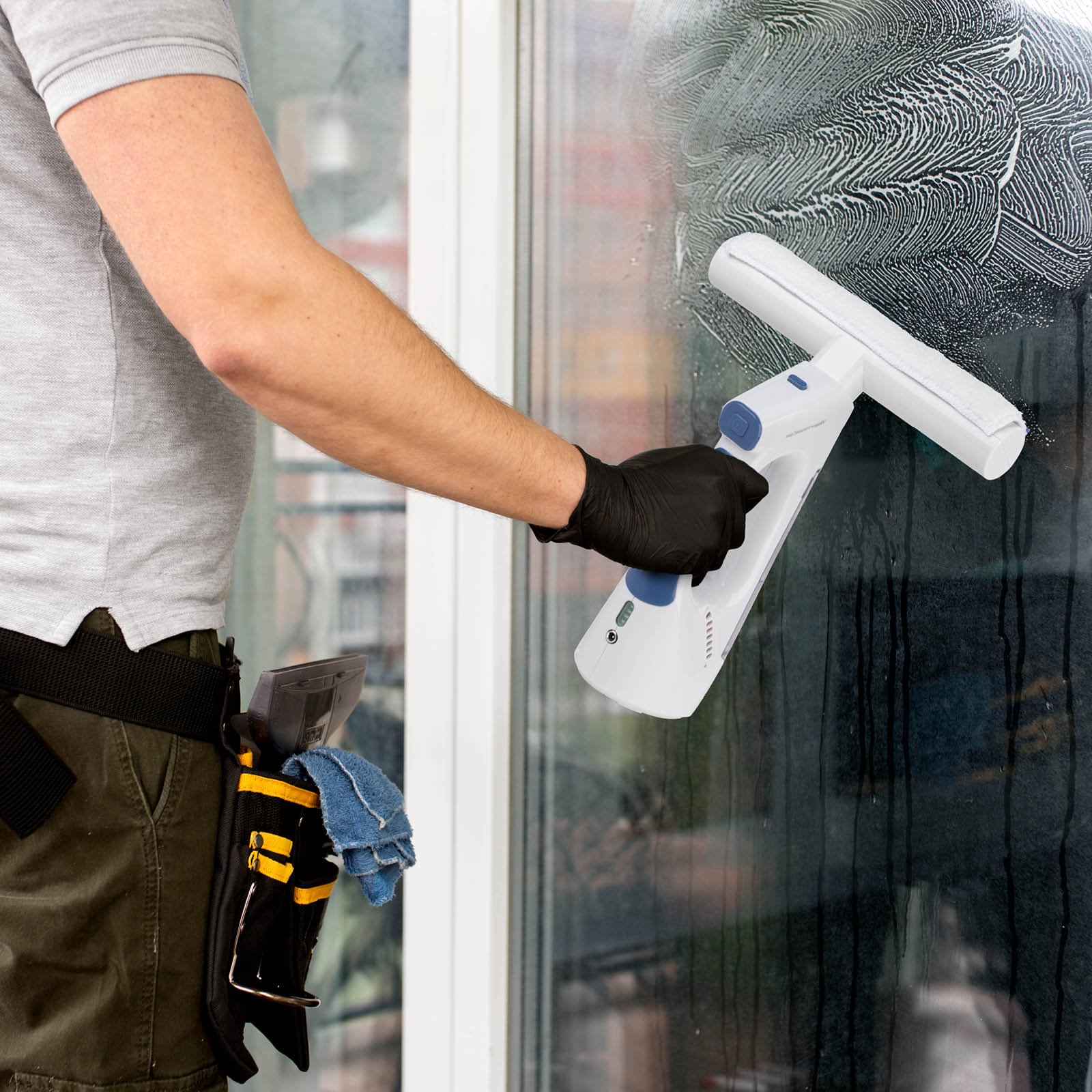Dėl lengvos konstrukcijos ir belaidžio veikimo langų valytuvu galite net 30 minučių lengvai ir veiksmingai valyti langus – be nereikalingų pastangų ir varginančių laidų. LED baterijos indikatorius taip pat įspėja apie valytuvo akumuliatoriaus būseną.