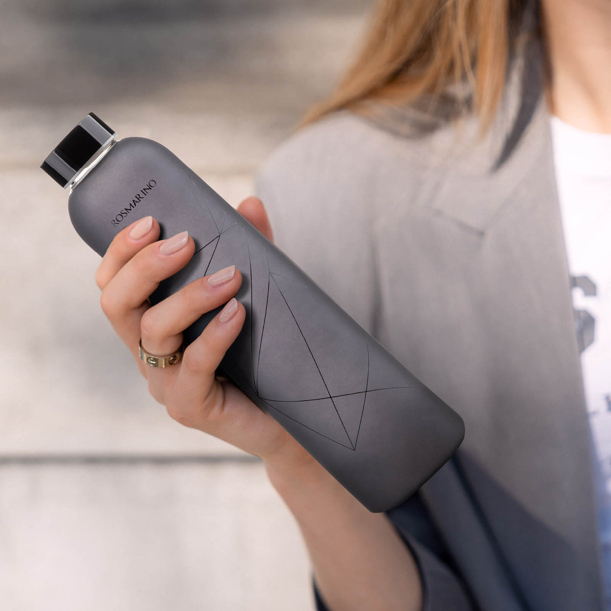 Elegantiškas Rosmarino vandens butelis padės užtikrinti, kad nejusite jokio troškulio. 750 ml talpos butelis bus puikus kompanionas biure, pasivaikštant, kelionėje ar paplūdimyje. Naudojant daugkartinį butelį, taip pat sumažinamas poveikis aplinkai ir atliekų kiekis.