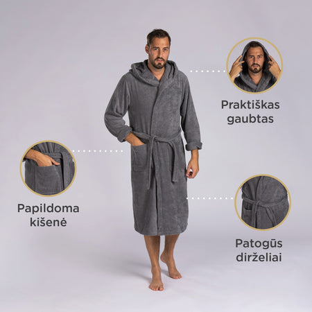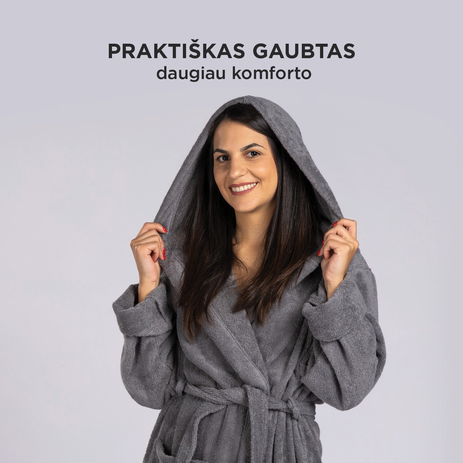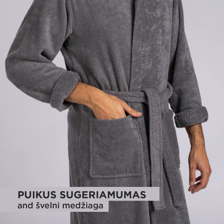 - Elegantiškas chalatas, pagamintas iš 100 % medvilnės.