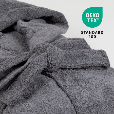 Infinity chalatas yra pagamintas iš 100 % medvilnės ir turi OEKO-TEX sertifikatą, užtikrinantį, kad audinys neturi kenksmingų medžiagų. Po maudynių ar plaukimo galite be rūpesčių apsisiausti šiuo chalatu, nesibaimindami odos sudirgimo.