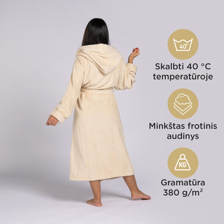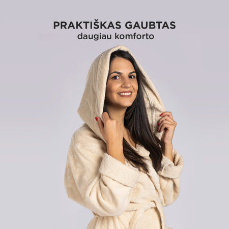- Elegantiškas chalatas, pagamintas iš 100 % medvilnės.