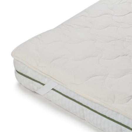 - Pagaminta iš 100 % nebalintos medvilnės ir bambuko pluošto, kad miego aplinka būtų sausa.
