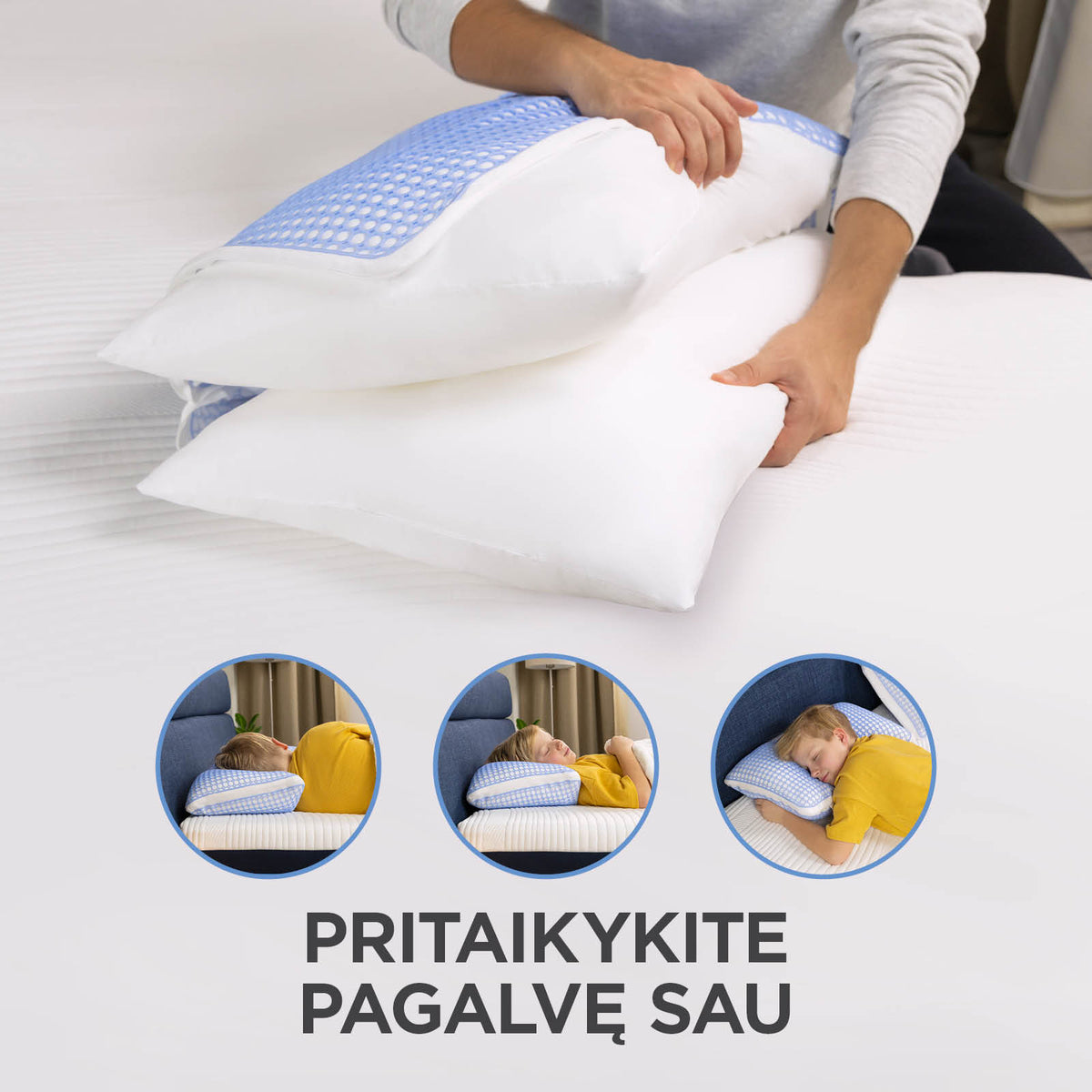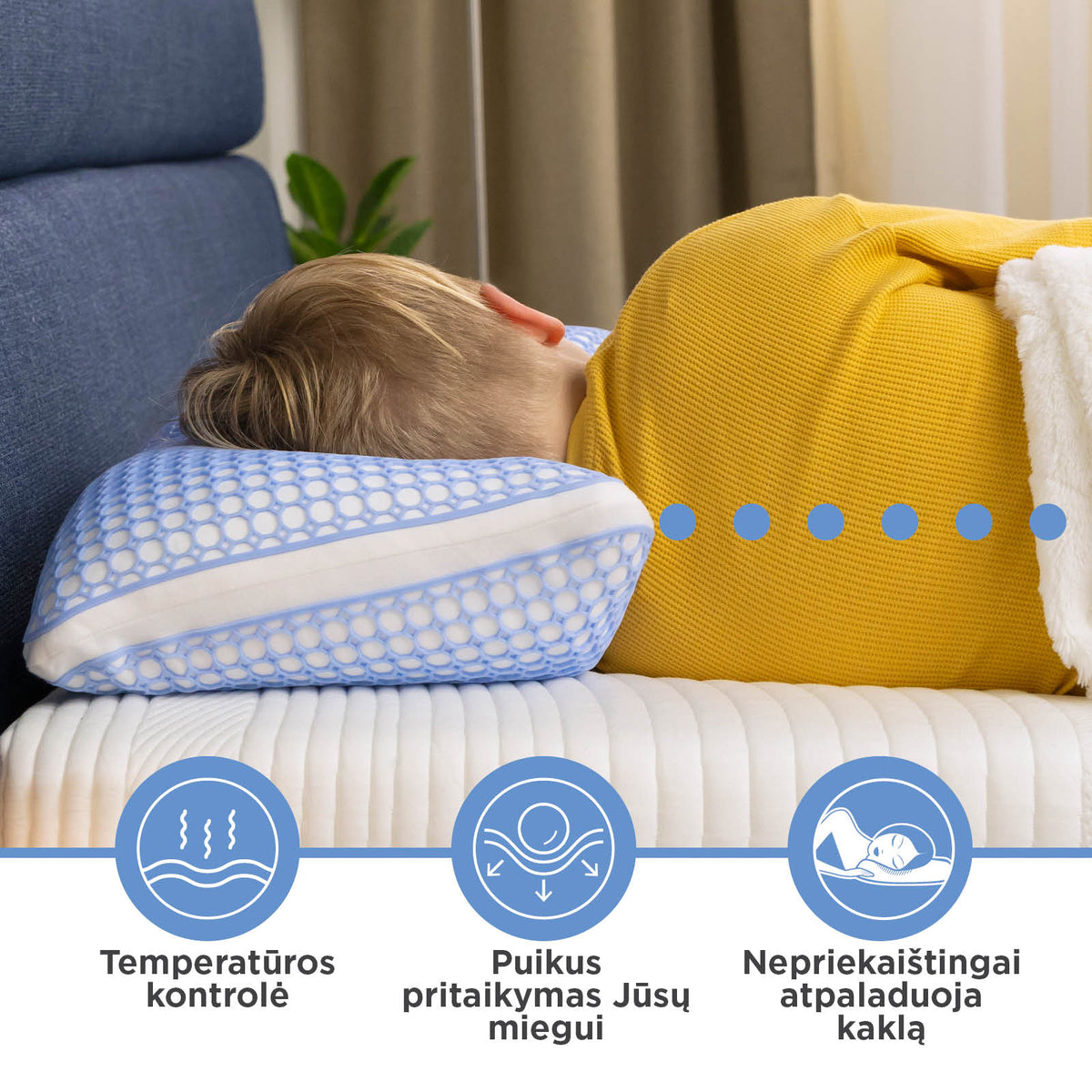 - Inovatyvi MemoGel medžiaga užtikrina geresnę atramą ir kvėpavimą nei įprastos pagalvės.