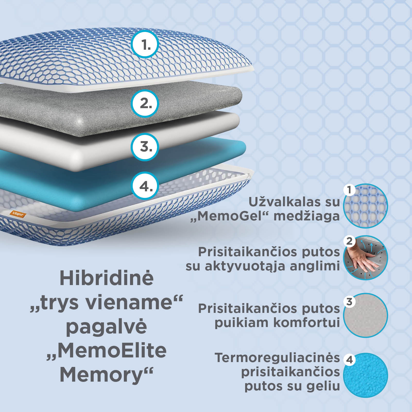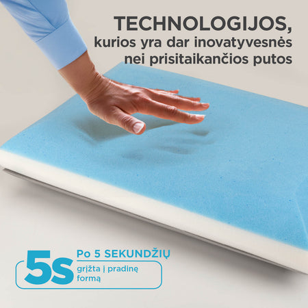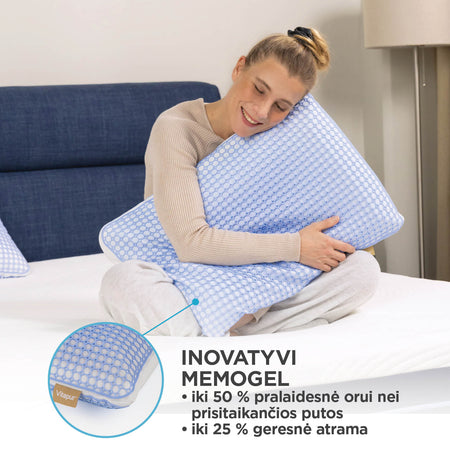 - Novatoriška MemoGel medžiaga užtikrina geresnę atramą ir kvėpavimą nei įprastos pagalvės iš putų.