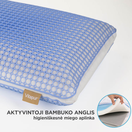 Pagalvė sudaryta iš trijų funkcinių putų sluoksnių, užtikrinančių maksimalų komfortą. Vienas jų – viskoelastinės (memory) putos su gelio mikrokapsulėmis per visą paviršių, kurios padeda išlaikyti gaivią miego aplinką. Gelis sugeria galvos skleidžiamą perteklinę šilumą miego metu ir ją tolygiai išsklaido, taip reguliuodamas paviršiaus temperatūrą ir suteikdamas gaivumo pojūtį.