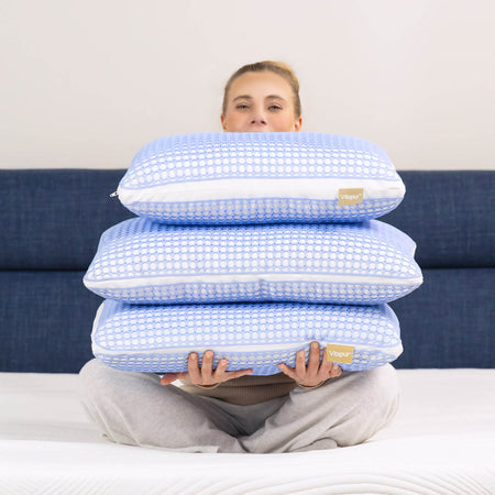 - Hibridinė 3 viename viskoelastinių (memory) putų pagalvė: 3 funkcionalūs sluoksniai optimaliam palaikymui, temperatūros reguliavimui ir gaivumo pojūčiui.
