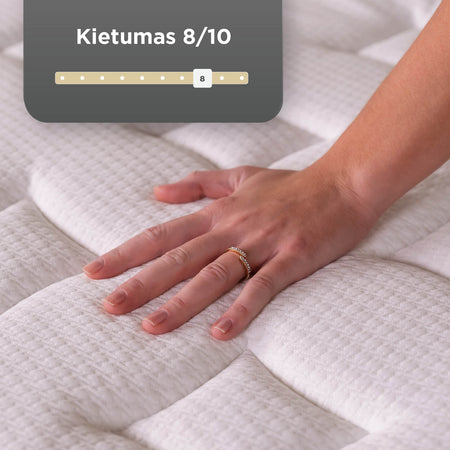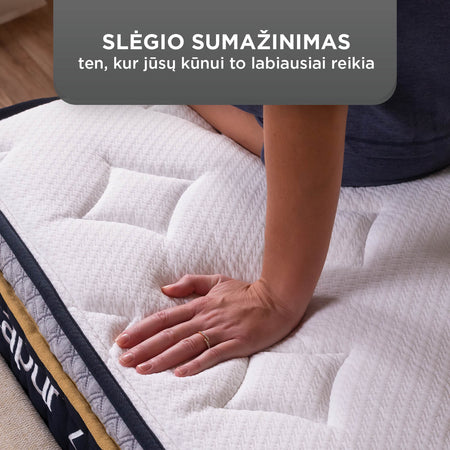 - Pažangios kišeninės spyruoklės sugeria judesius ir vibracijas – ramesniam miegui ir lengvumo pojūčiui.