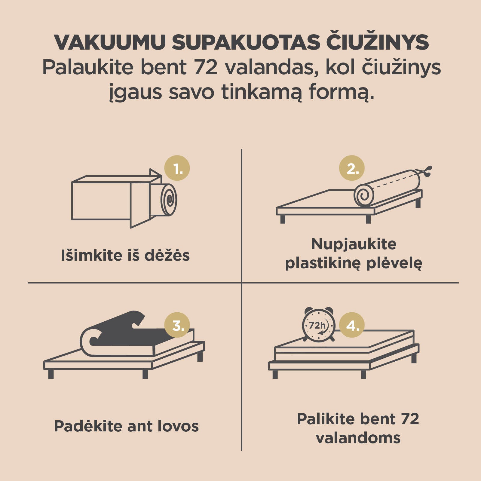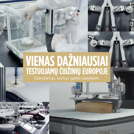 - Sukurtas bendradarbiaujant su miego specialistais ir išbandytas daugiau nei 30 testų, patvirtinančių aukštus Vitapur čiužinių kokybės standartus.