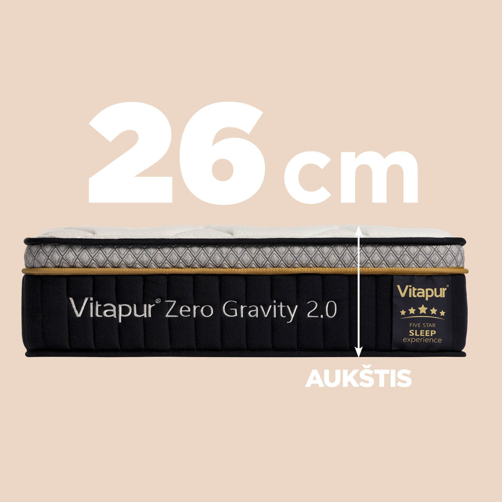Atraskite atnaujintą Vitapur ZeroGravity 2.0 čiužinį – sukurtą tam, kad jaustumėtės lyg miegotumėte ant debesies. Dėl pažangios sudėties su kišeninėmis spyruoklėmis šis čiužinys suteikia lengvumo pojūtį – jame nejaučiami jokie judesiai ar vibracijos, todėl miegas tampa dar ramesnis. Pagrindas su 7 komforto zonomis užtikrina individualią atramą visose miego pozose – ar miegotumėte ant šono, nugaros, ar pilvo. Papildomą patogumą suteikia Spine-Align sluoksnis, kuris padeda palaikyti taisyklingą stuburo padėtį ir mažina galimų skausmų riziką. Inovatyvus BreathFlex sluoksnis pasirūpina efektyviu šilumos ir drėgmės pašalinimu, tad miego aplinka visuomet išlieka optimali. Debesies pojūtį sustiprina net trys elastingų putų sluoksniai, įsiūti į čiužinio užvalkalą – jie sugeria kūno judesius ir suteikia ypatingą švelnumą. Elegantiškas spalvų derinys, kokybiškas meistriškumas ir subtilios dizaino detalės suteikia čiužiniui išskirtinumo ir estetikos.