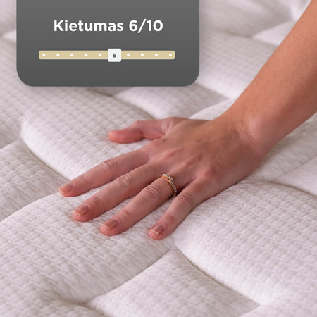 - Pažangios kišeninės spyruoklės sugeria judesius ir vibracijas – ramesniam miegui ir lengvumo pojūčiui.