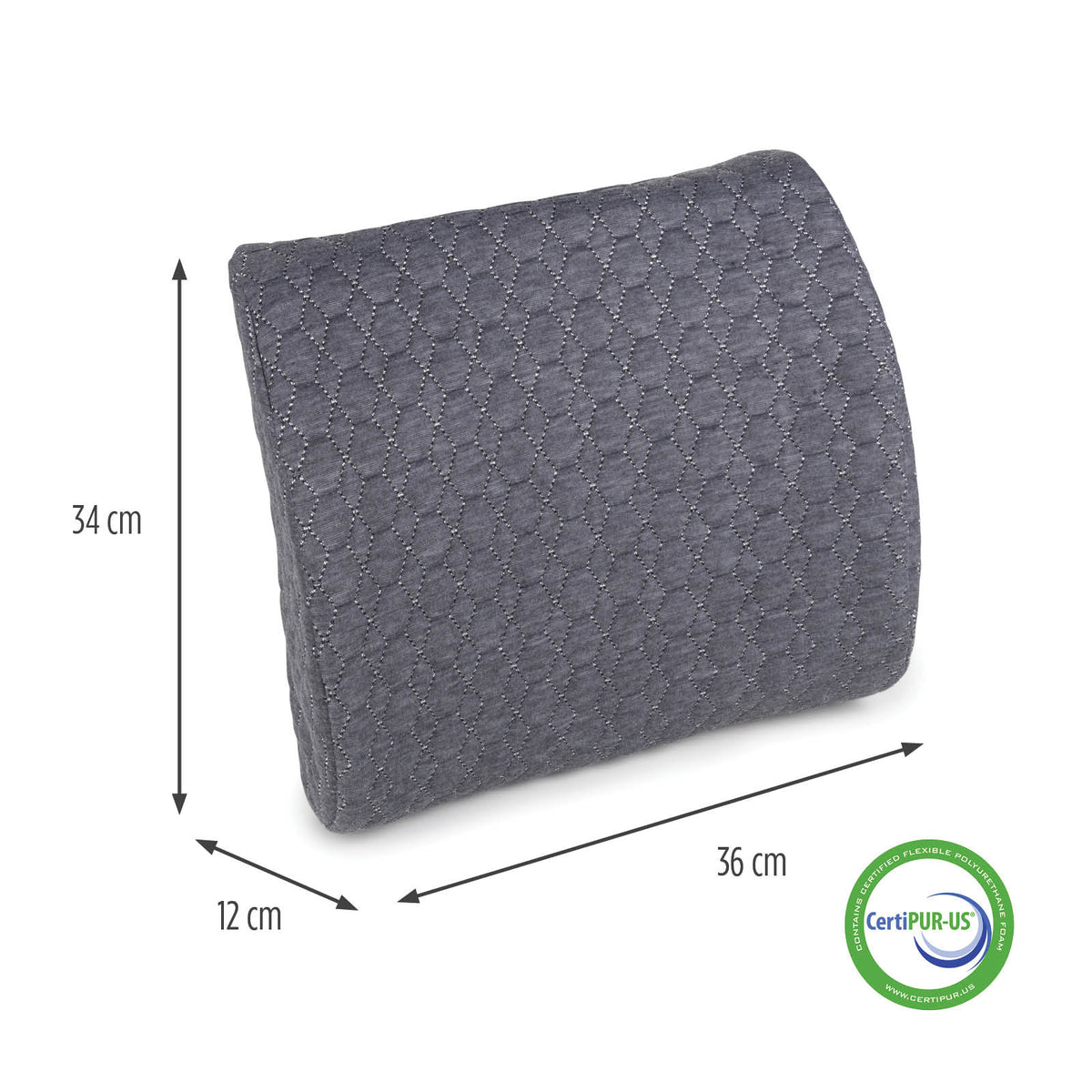 - Ergonomiška pagalvės forma suteikia puikią atramą juosmens sričiai.