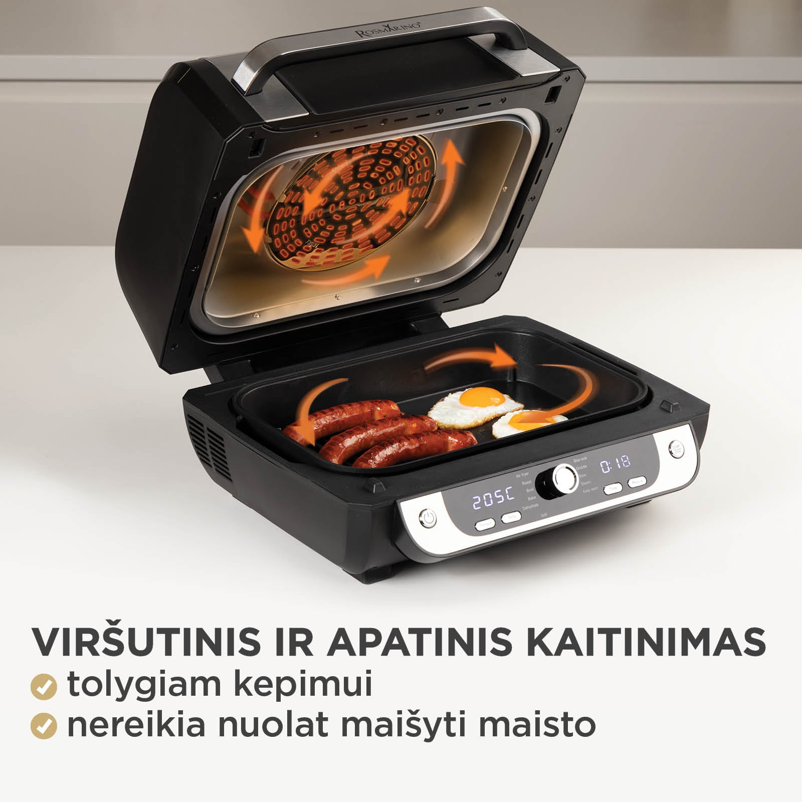 - Viršutinis ir apatinis kaitinimo elementai užtikrina tolygiai iškepusius ir traškius patiekalus kiekvieną kartą.