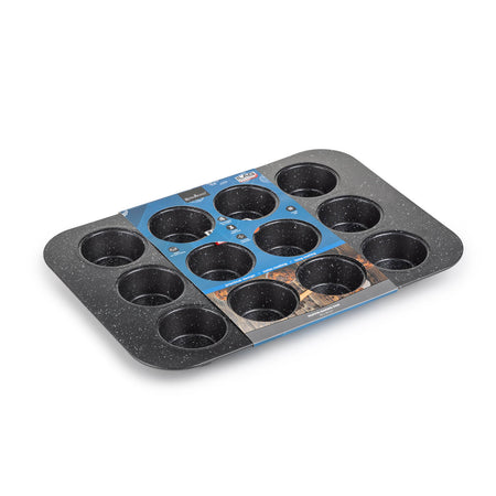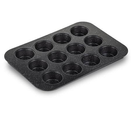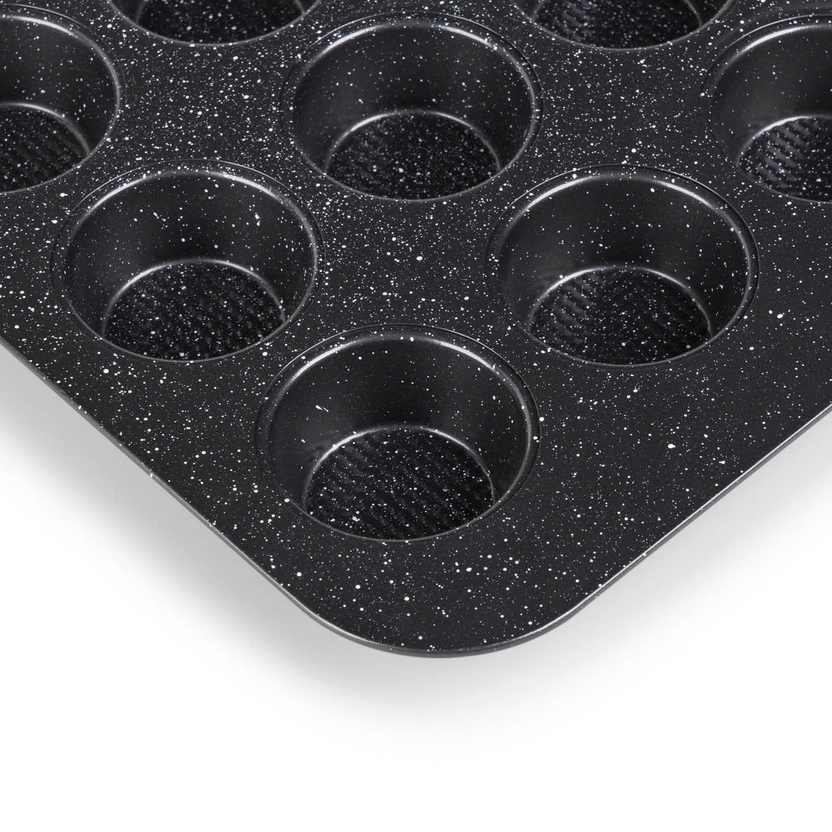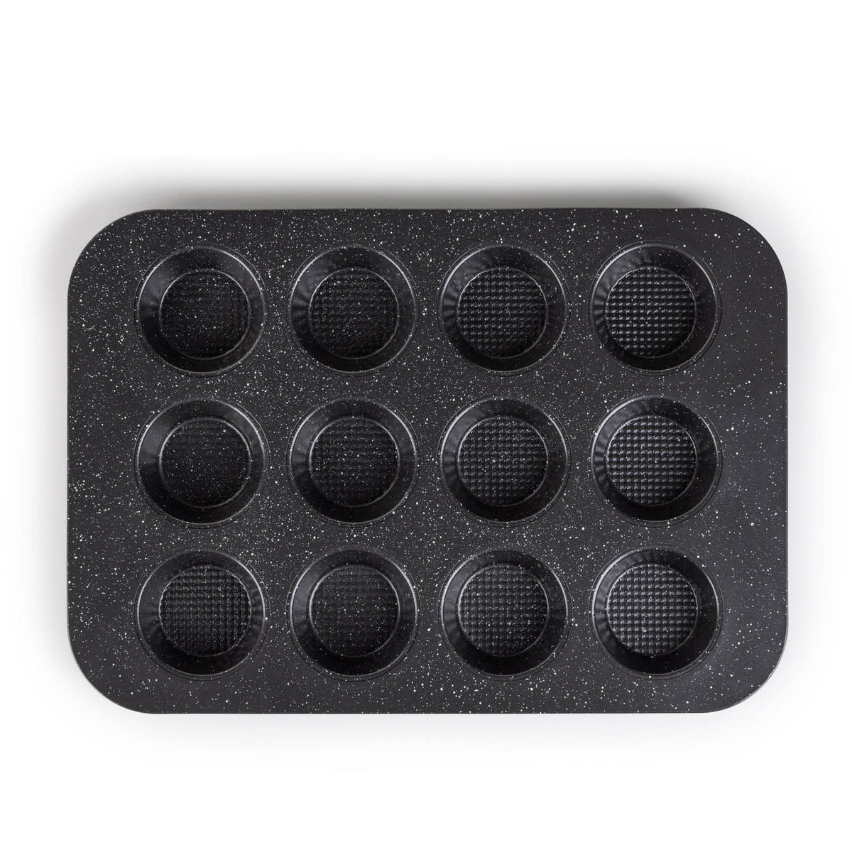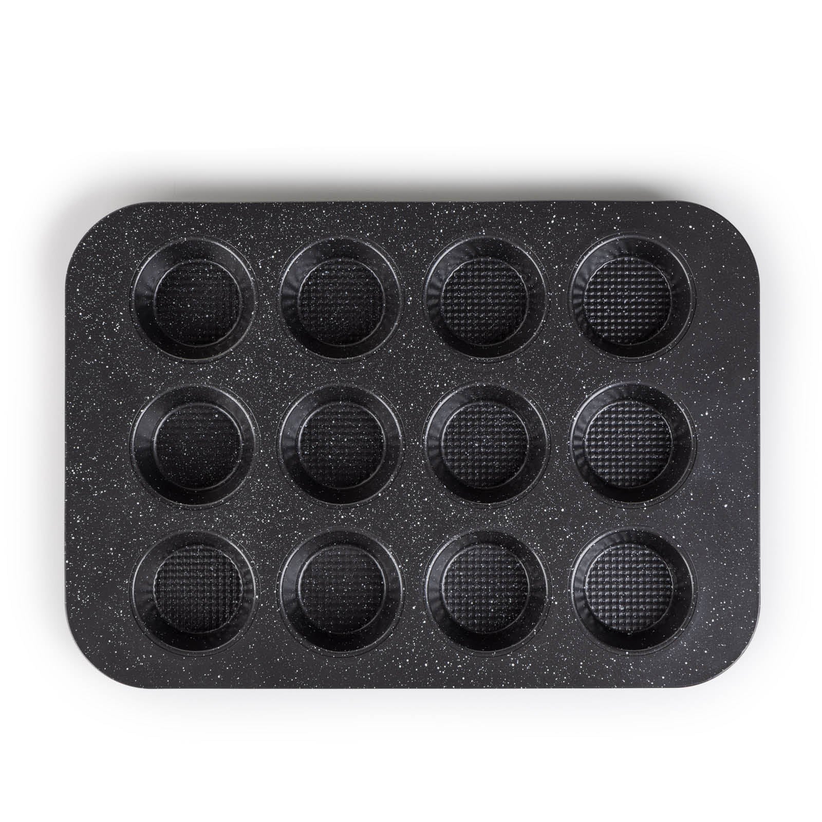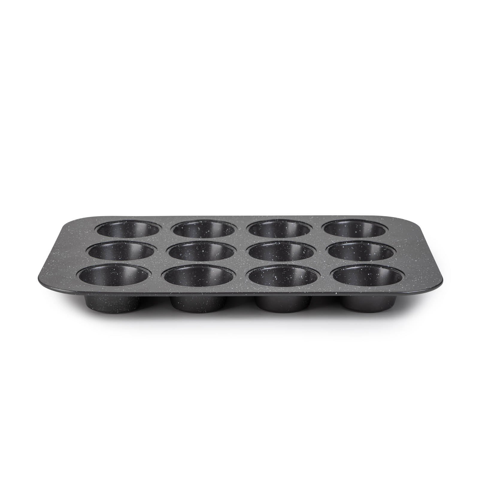 Keksiukų kepimo forma „Rosmarino BakerPro“ yra viskas, ko reikia norint puikiai paruošti sultingus ir skanius vaisių, šokoladinius ar daržovių keksiukus. Marmurinės išvaizdos forma turi šveicariškos kokybės nepridegančią ILAG dangą, kuri užtikrina tolygų šilumos pasiskirstymą ir kepimą su minimaliu riebalų kiekiu, nes maistas neprilimpa prie formos. Dėl anglinio plieno konstrukcijos keptuvė atspari aukštai temperatūrai iki 230 °C ir tinkama laikyti šaldytuve ir šaldiklyje. Patvarus ir patikimas dizainas profesionaliems kepimo rezultatams.