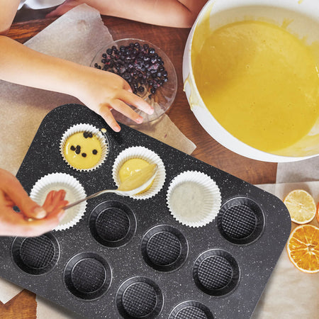 Keksiukų kepimo forma „Rosmarino BakerPro“ yra itin praktiška ir leidžia naujai pažvelgti į kepimą. Kadangi ji didesnio dydžio, vienu metu galite kepti 12 keksiukų, kurių užteks saldžiam užkandžiui visai šeimai. Dėl tolygaus šilumos pasiskirstymo keksiukai visada puikiai iškeps, bus sultingi ir skanūs.