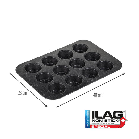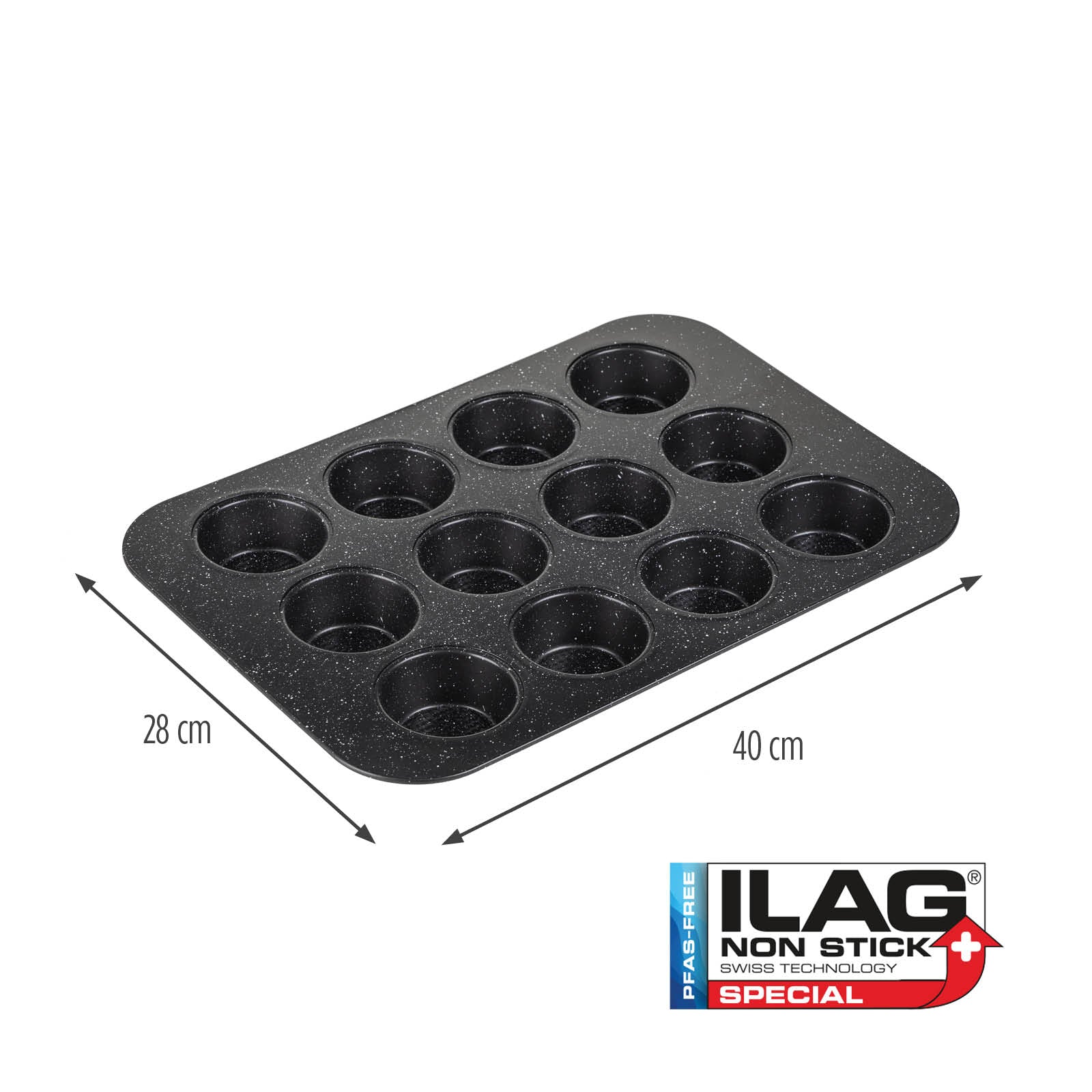 Ar kepdami nuolat nerimaujate, ar pyragas gerai iškeps ir lengvai jį išimsite iš kepimo formos? Pamirškite tai! Forma turi specialią šveicariškos kokybės nepridegančią ILAG dangą. Ji užtikrina, kad keksiukus lengvai išimsite iš kepimo formos. Danga be kenksmingų medžiagų, saugi naudoti maistui, atspari įbrėžimams, o tai užtikrina ilgą kepimo formos naudojimo laiką.