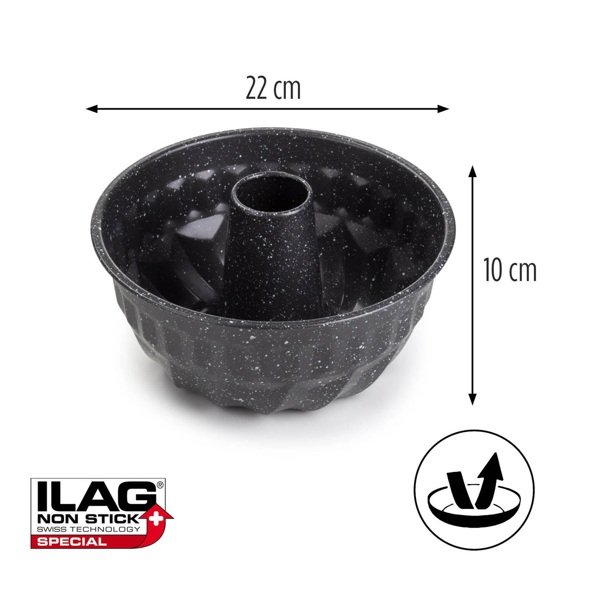Kekso kepimo formoje „Rosmarino BakerPRO“ yra viskas, ko reikia tobulam poticai (tradicinis slovėniškas pyragas), bobai ar panašiems kepiniams pagaminti. Marmurinės išvaizdos keptuvė padengta nepridegančia ILAG šveicariškos kokybės danga, leidžiančia tolygiai paskirstyti šilumą ir kepti naudojant minimalų riebalų kiekį, nes maistas neprilimpa prie keptuvės. Dėl anglinio plieno sudėties keptuvė taip pat atspari aukštai temperatūrai, iki 230°C; tinkama laikyti šaldytuve ir šaldiklyje. Patvarus ir patikimas dizainas profesionaliems kepimo rezultatams.