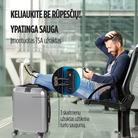Integruotas 3 skaitmenų TSA užraktas užtikrina saugų laikymą ir dar daugiau nerūpestingų atostogų dienų. TSA spyna ypač palengvina keliones į JAV, kur lagaminai per patikrinimą atidaromi specialiu raktu nepažeidžiant spynos.