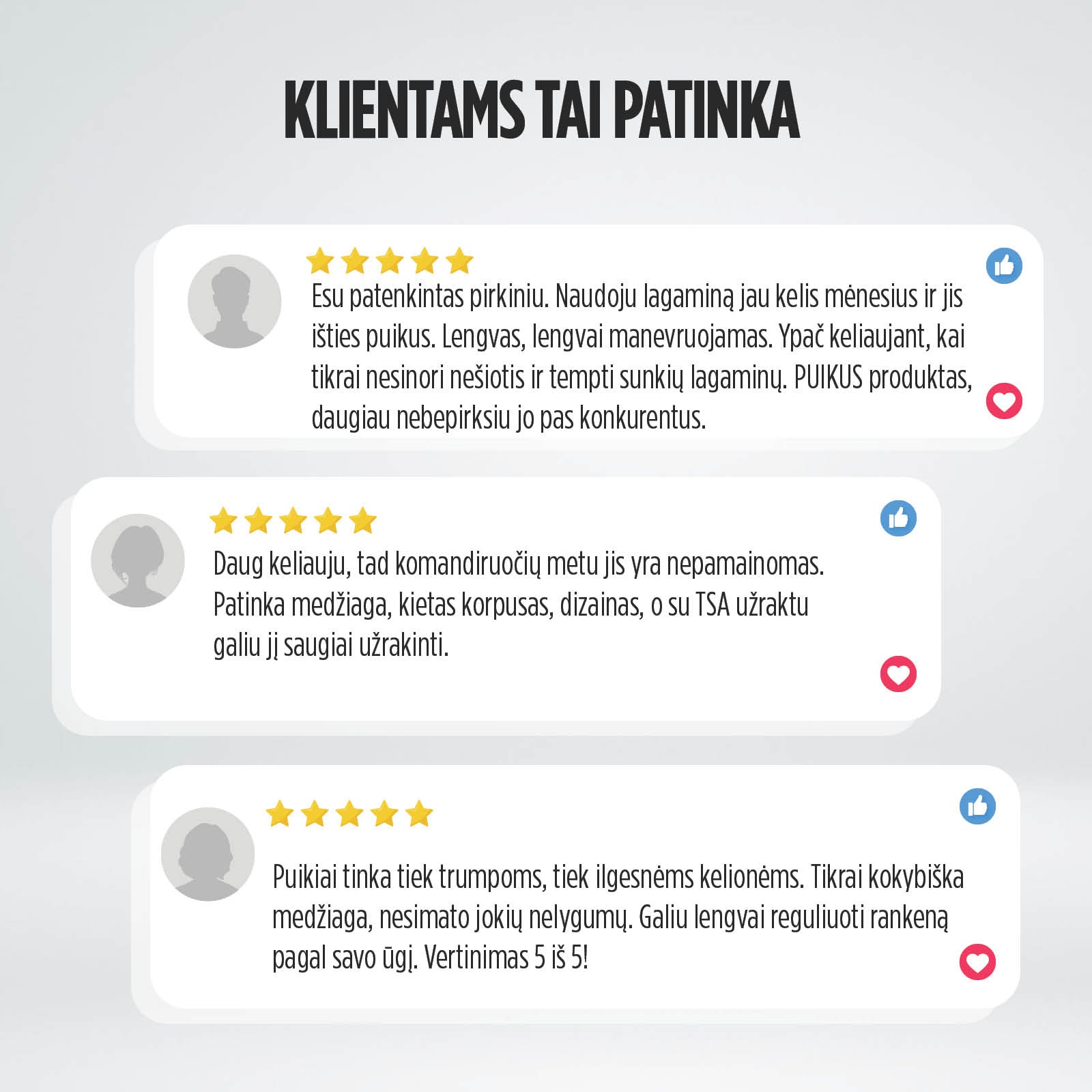 - Reguliuojama teleskopinė rankena leidžia lengvai gabenti net sunkiausią bagažą.