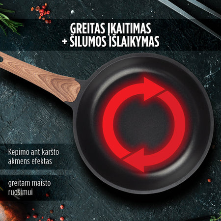 - Keptuvė pagaminta iš aukštos kokybės lieto aliuminio.