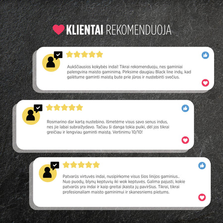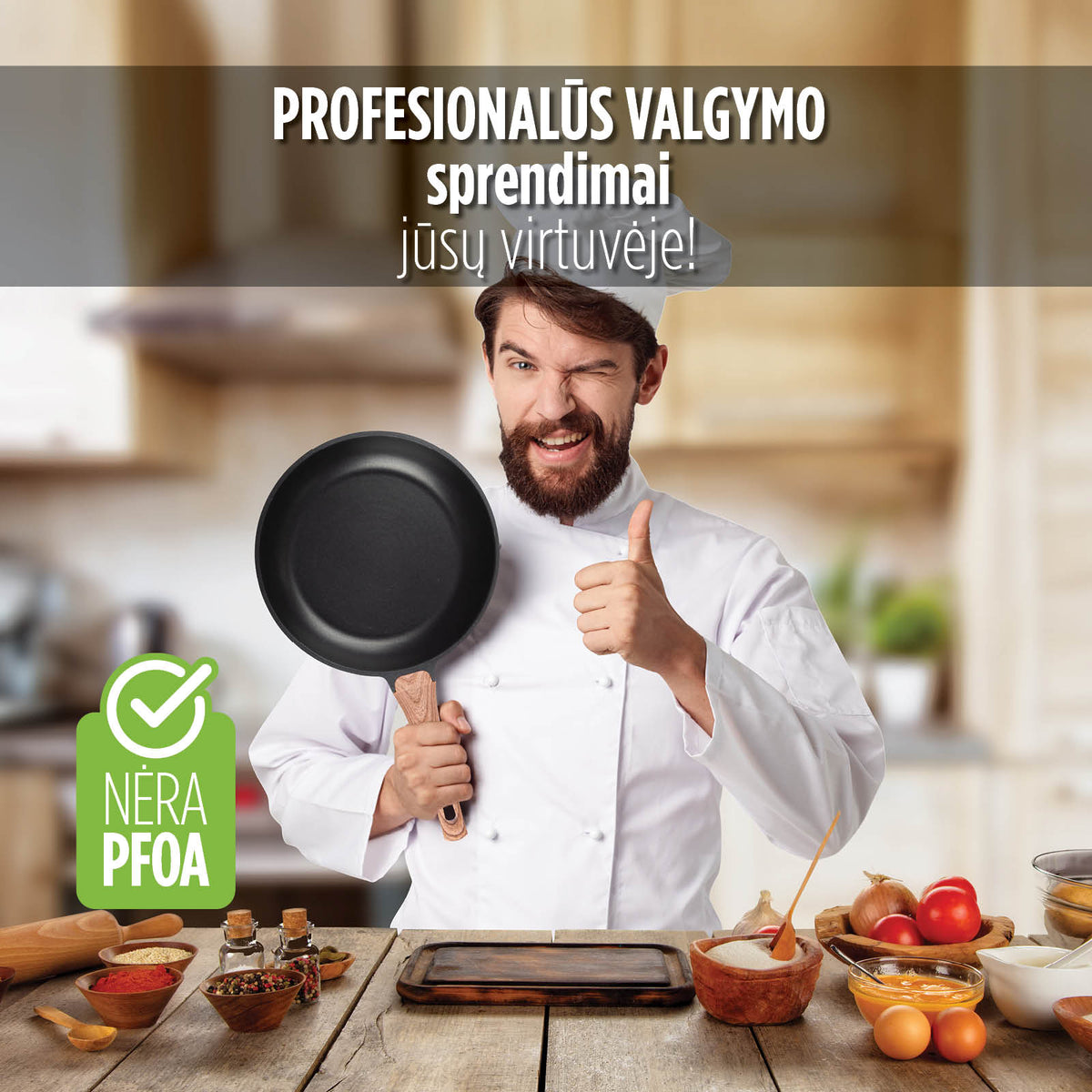 - Visi mūsų puodai ir keptuvės sukurti pagal aukščiausius standartus, juose nėra kenksmingo PFOA ar kitų kenksmingų medžiagų.
