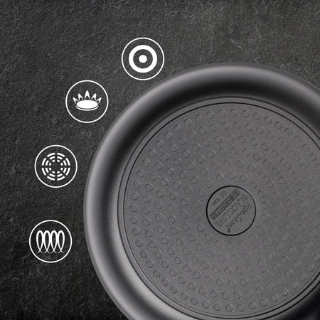 Dėl išskirtinio medžiagų laidumo puodų ir keptuvių nereikia perkaitinti, didžiausiam efektyvumui ir greitam maisto gaminimui. Indukcinėse kaitlentėse rekomenduojame naudoti du trečdalius kaitlentės galios. Keptuvę naudokite ant indukcinės kaitlentės, kurios dydis atitinka keptuvės dugno skersmenį.