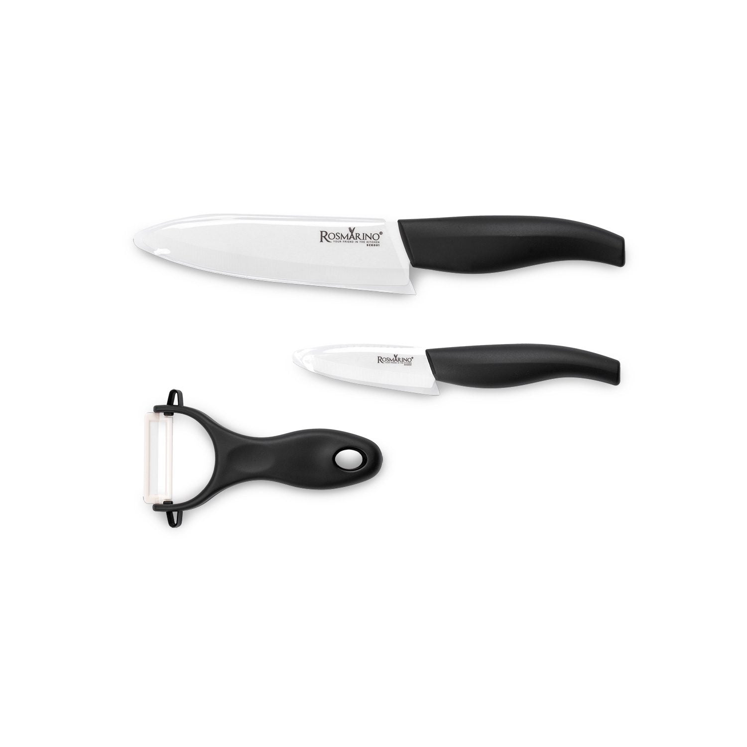 Puikus KLASIKINIS virtuvės komplektas kiekvienam profesionaliam ar pradedančiajam virėjui! Didesnis keraminis universalus peilis skirtas įvairiems maisto produktams pjaustyti, mažesnis – vaisiams ir daržovėms pjaustyti bei patogiai skusti. Keraminiai peiliai laikomi plonesniais ir lengvesniais nei kiti virtuviniai peiliai. Jie leidžia kruopščiai supjaustyti maistą į mažesnius ir plonesnius gabalėlius ar griežinėlius. Jų aštrumas išlieka 10 kartų ilgiau nei įprastų peilių, nes jie pagaminti iš labai patvarios ir tvirtos keramikos. Jų privalumas yra tas, kad jie neįgauna maisto produktų kvapo ir skonio, jų nemaišo ir neperkelia į kitus maisto produktus. Peilį ir skustuvą lengva plauti po tekančiu vandeniu su trupučiu ploviklio.